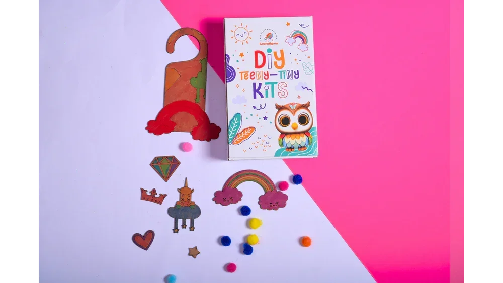 Kids can customize their set using the included 6 vibrant paint colors, sparkling glitter, soft pom poms, and Fevicol glue, making it both fun and mess-friendly. Whether it's hung on a bedroom door, study area, or playroom, these handcrafted creations add a personal and playful charm to any space.
