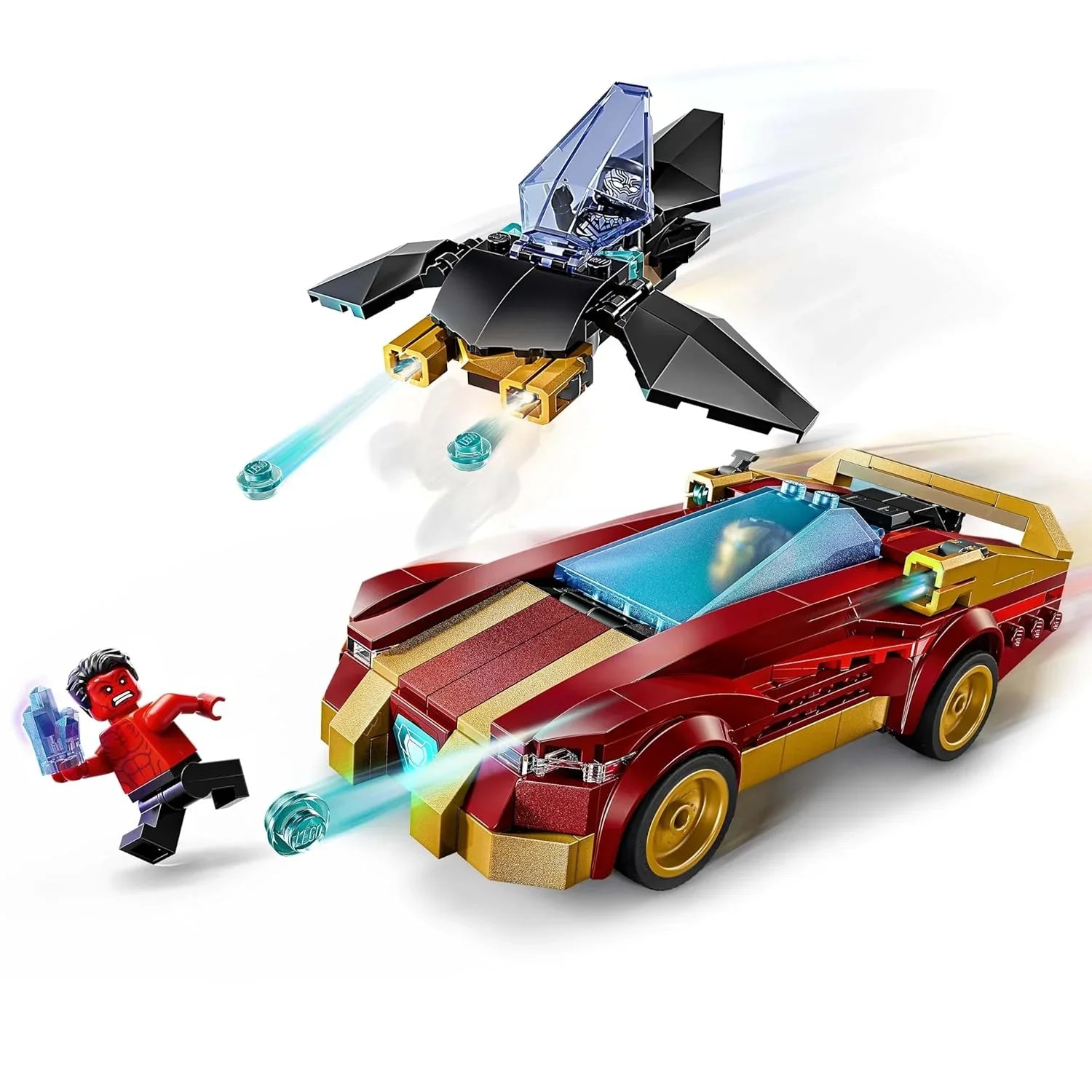 • Buildable Iron Man speed car and Black Panther aircraft enhance action-based storytelling