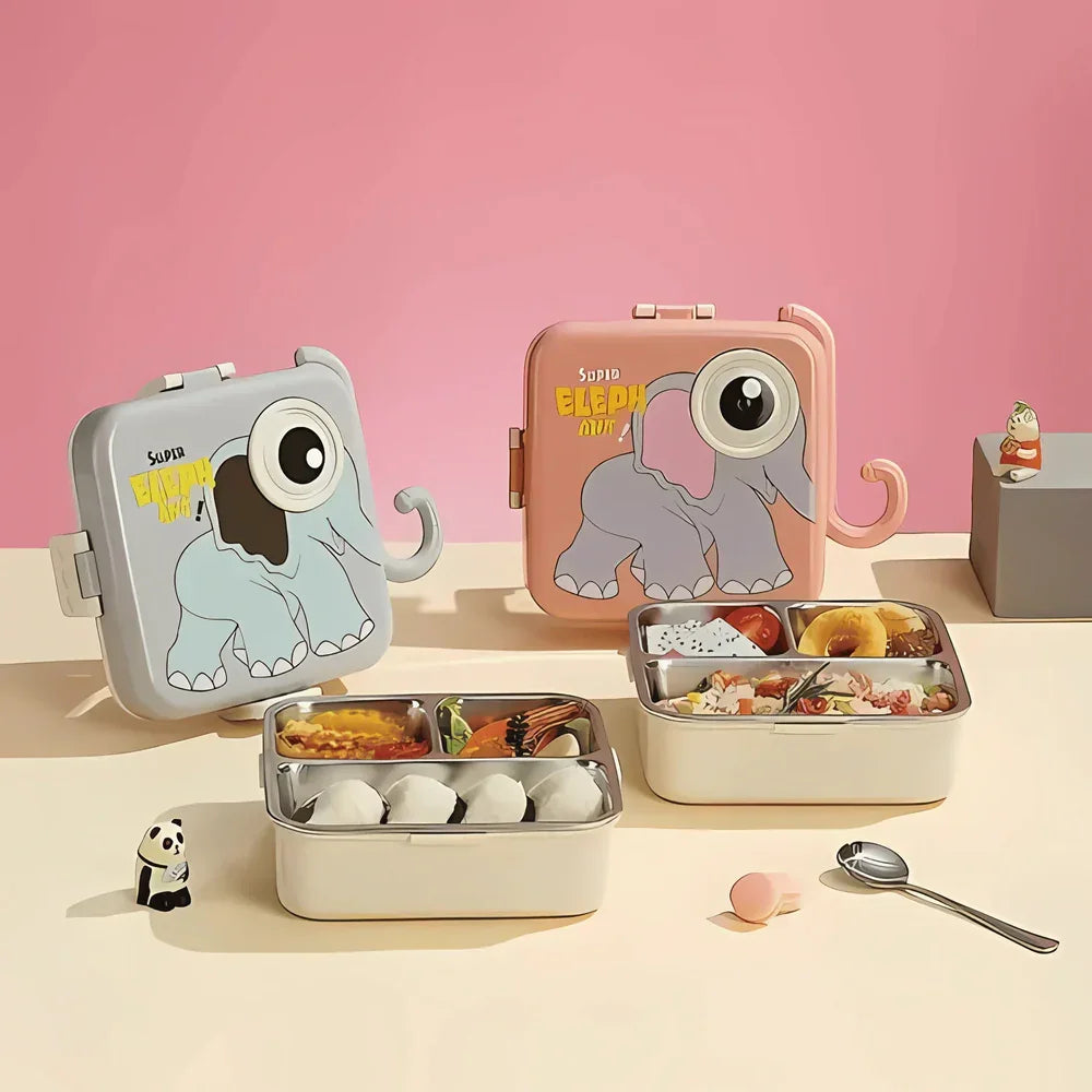 3D Big Eye Elephant Shaped Double Decker Lunch Box for Kids