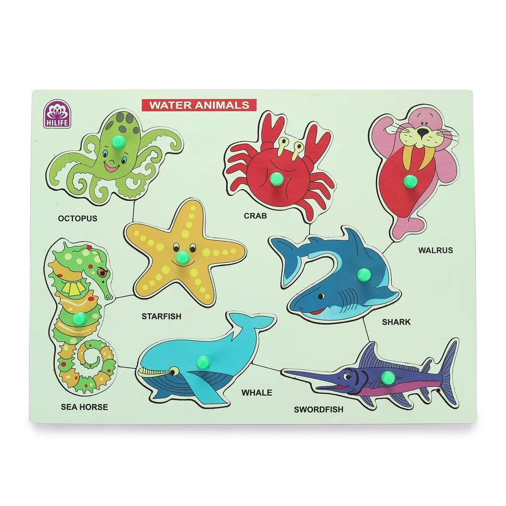 Introduce your child to the enchanting world beneath the waves with the HiLife Educational Water Animals Puzzle Board – Gold Series, a thoughtfully designed wooden peg puzzle that combines education with entertainment. Created to stimulate the minds of toddlers and preschoolers, this puzzle features a collection of popular aquatic animals—from dolphins and turtles to whales and octopuses—carefully illustrated and cut into individual puzzle pieces. It’s more than just a toy—it’s a foundation for early learning that blends visual recognition, language development, and fine motor skills into a single engaging experience.