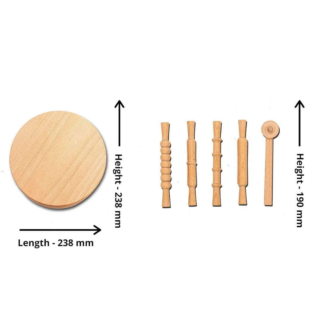 HILIFE Kids' Clay-Time Rolling Pin & Board Set (5 Pcs) – Wooden Chakla Belan Pretend Play Toy Set for Boys & Girls 3 Years+