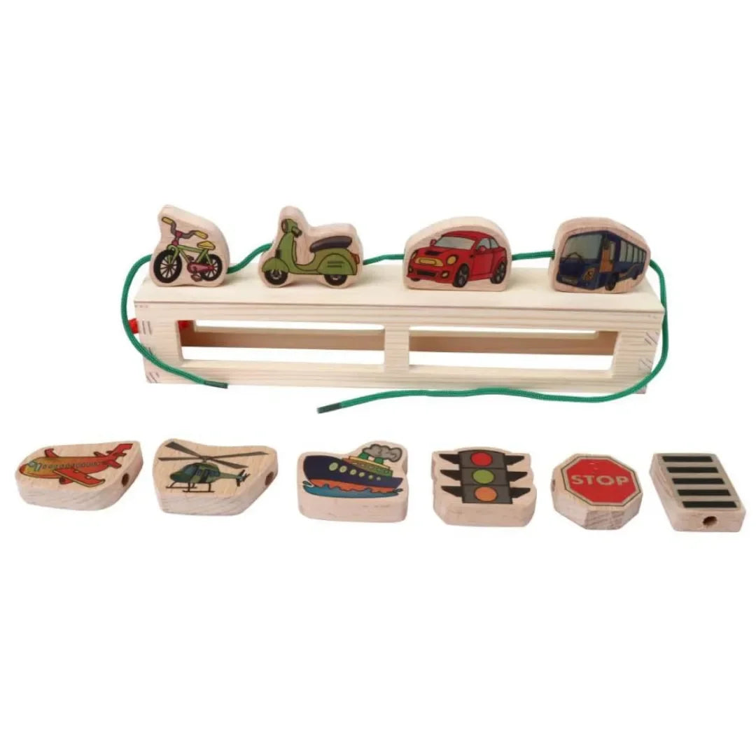 HILIFE Kids Lacing Wooden Toys (131) – Educational Vehicle Puzzle with Storage Box