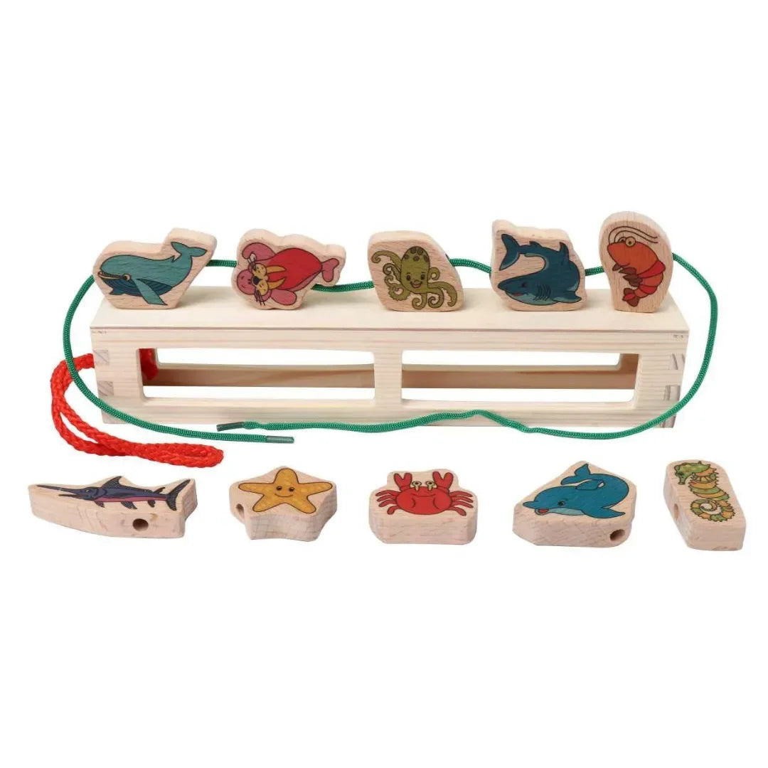 HILIFE Kids Lacing Wooden Toys (134) – Educational Sea Animal Puzzle with Storage Box