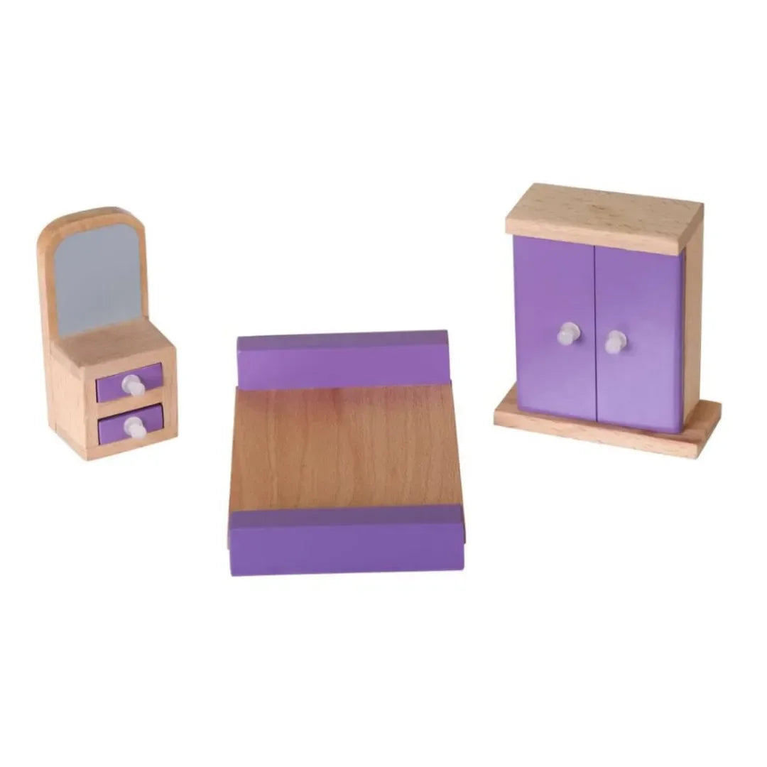Hilife Miniature Wooden Bedroom Accessories Set for Kids – Includes Bed, Mattress, Lamp, Almira, Dressing Table, and More