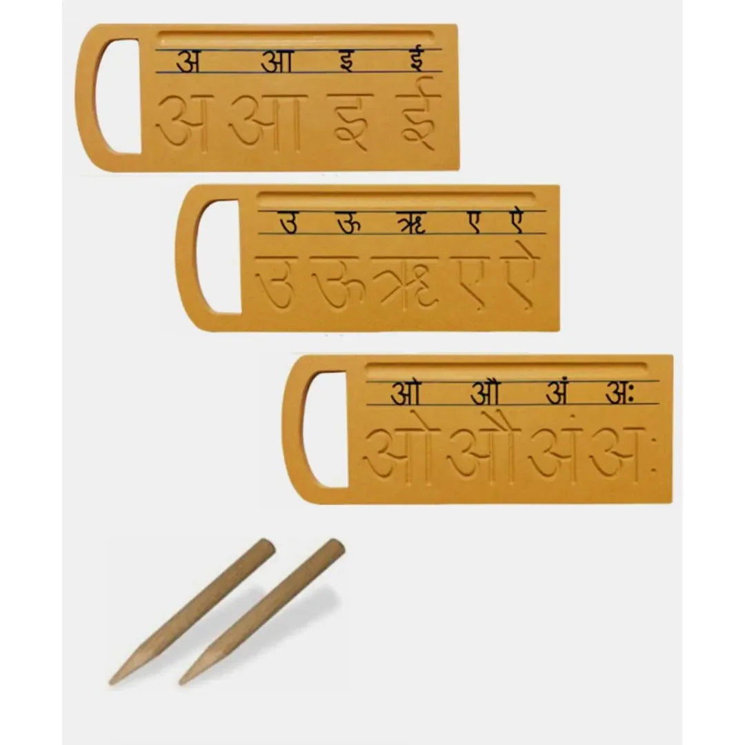 HILIFE Tiny Tots Hindi Vowels (स्वर) Tracing & Word Board – अ आ इ Wooden Hindi Swarmala Board with Pictures | Educational Tracing Toy for Kids | Learn to Write & Read in Hindi