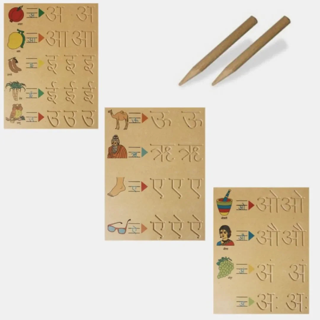 HILIFE Tiny Tots अआइ Tracing & Word Board – Wooden Hindi Vowels Learning Board with Objects for Kids