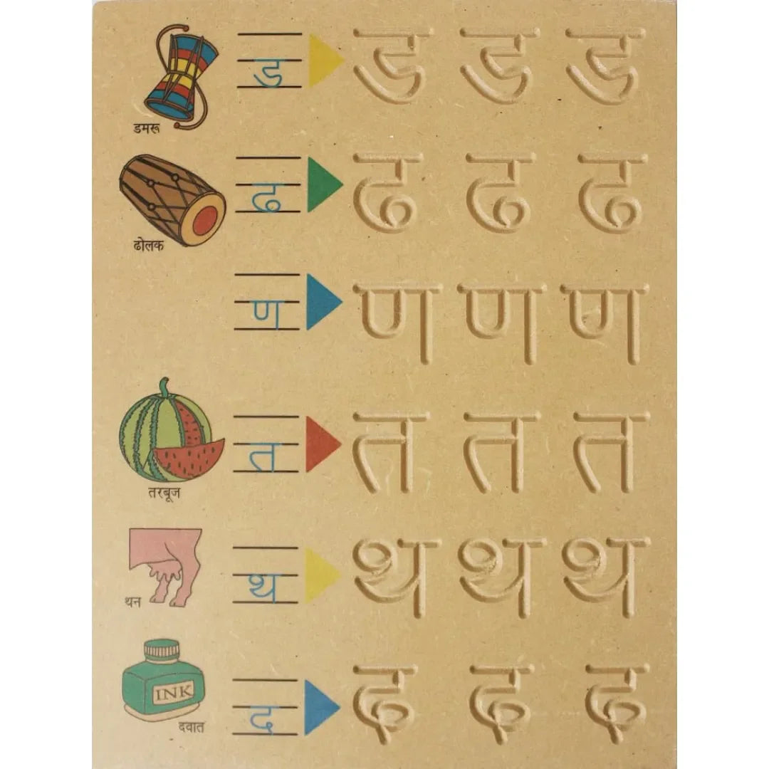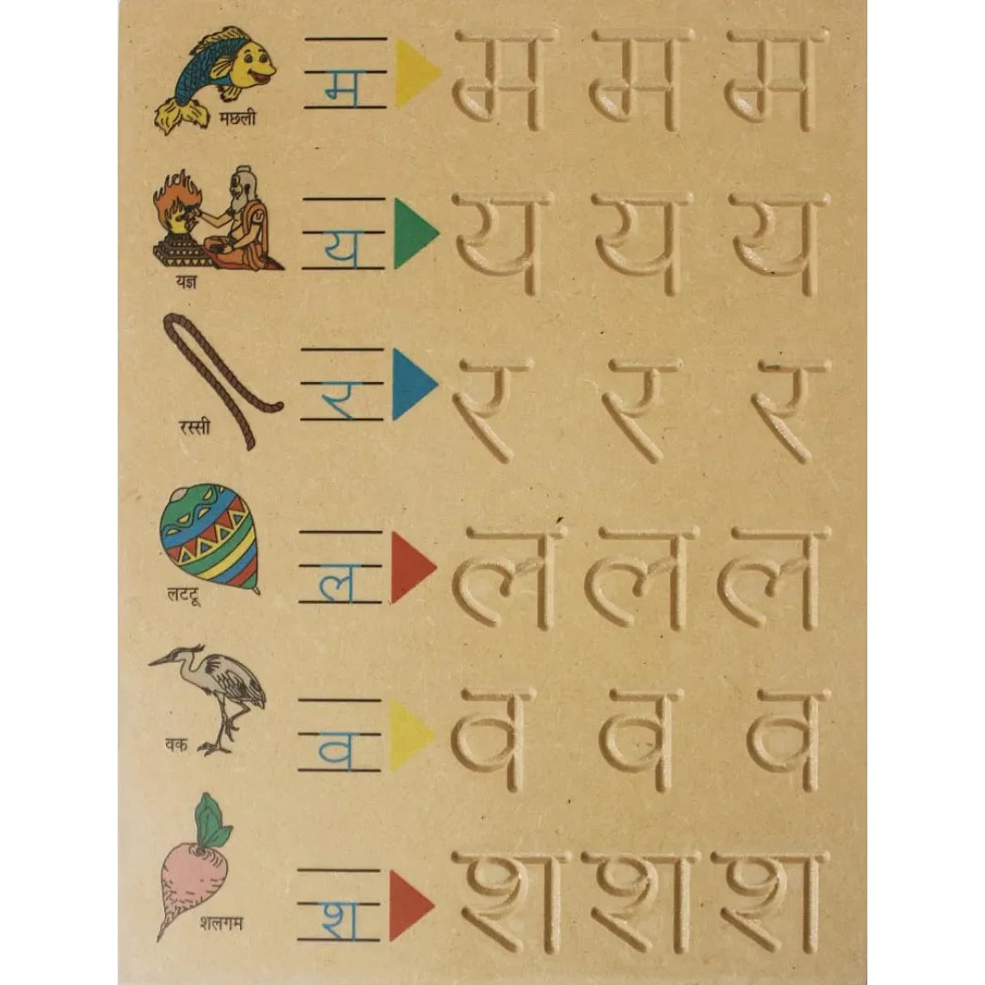 HILIFE Tiny Tots कखग Tracing & Word Board – Wooden Hindi Consonants Learning Board with Picture Words for Kids