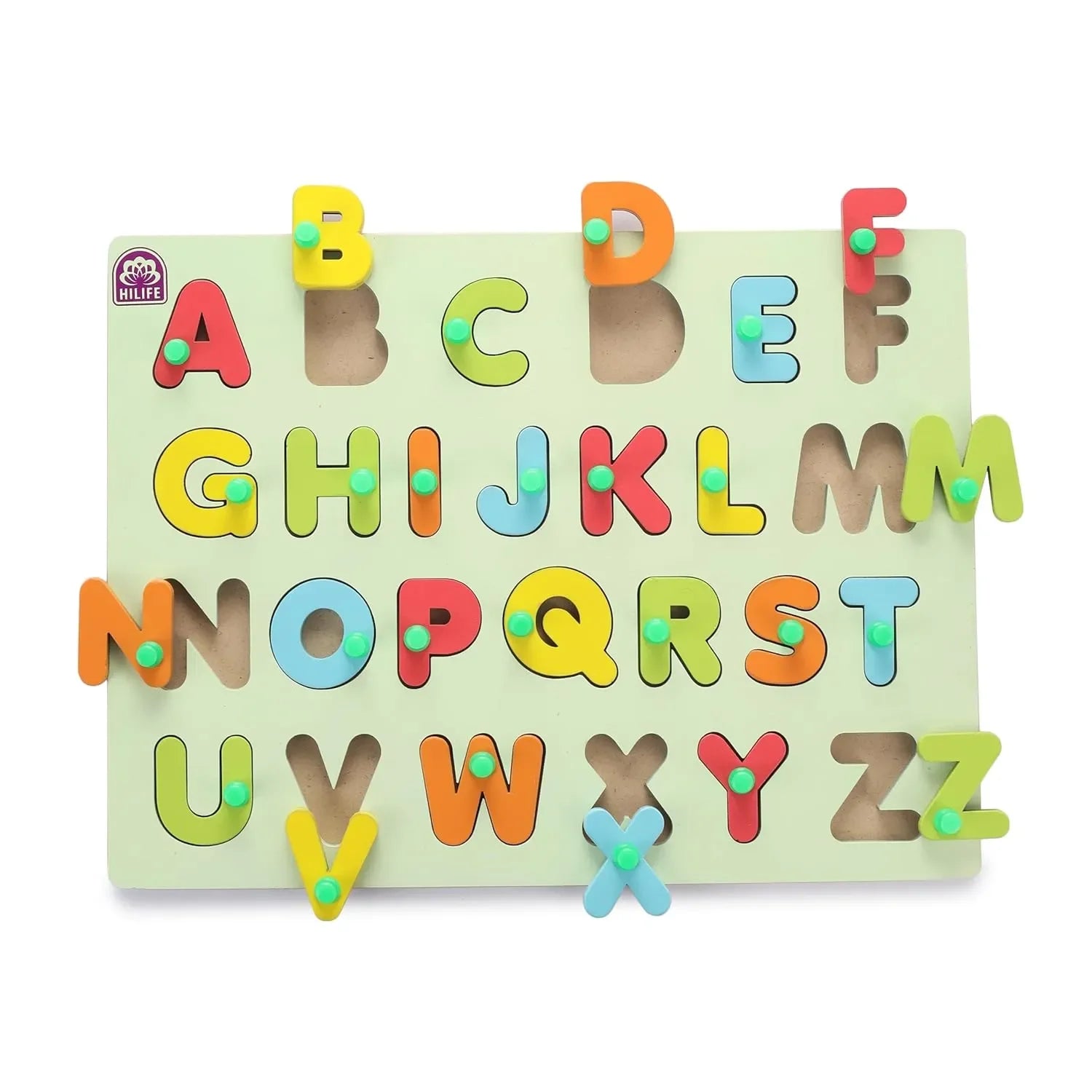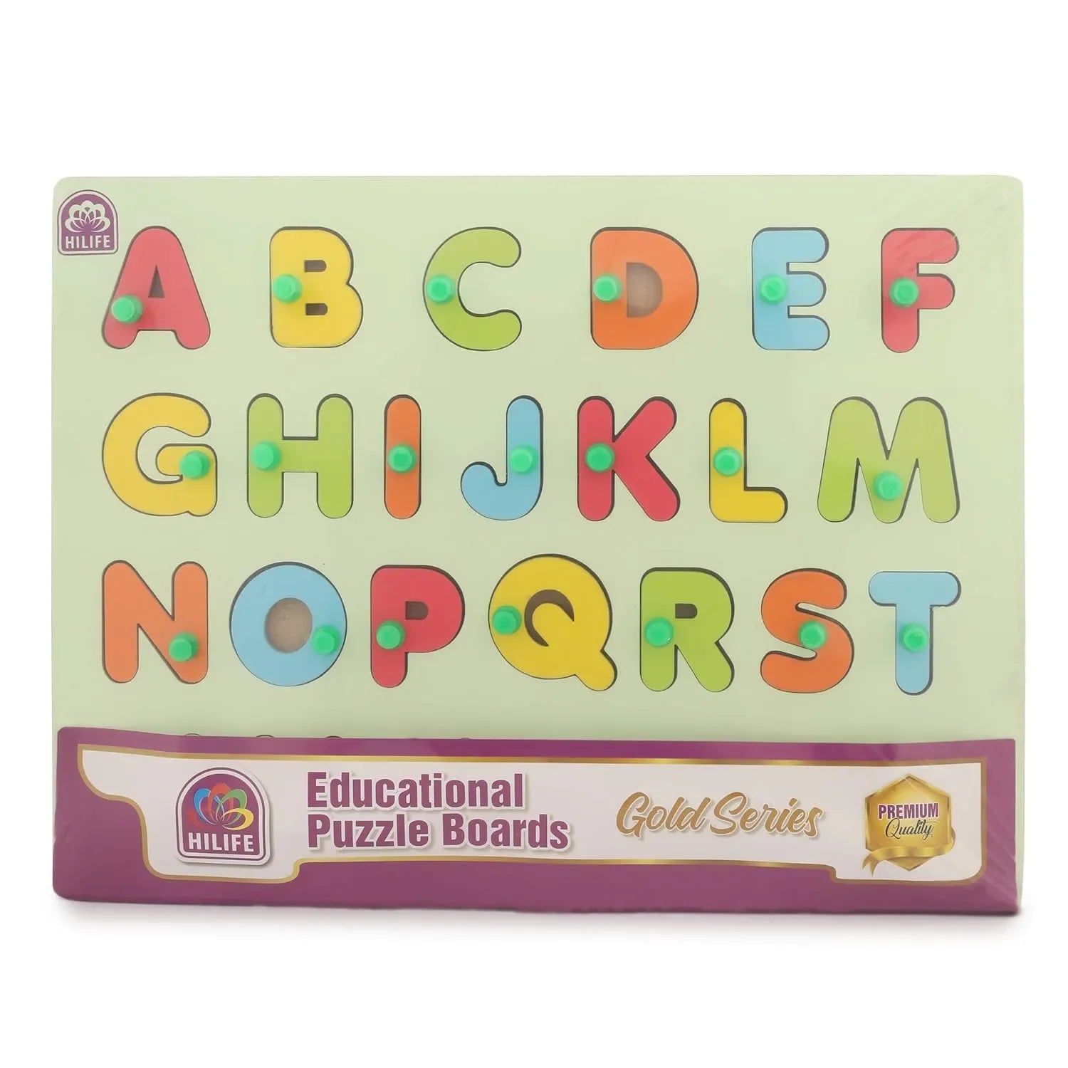 HILIFE Wooden Alphabet Puzzle Board – A to Z Letters – Gold Series Educational Toy with Pegs for Toddlers – Premium Learning Puzzle for Early Letter Recognition and Motor Skills Development