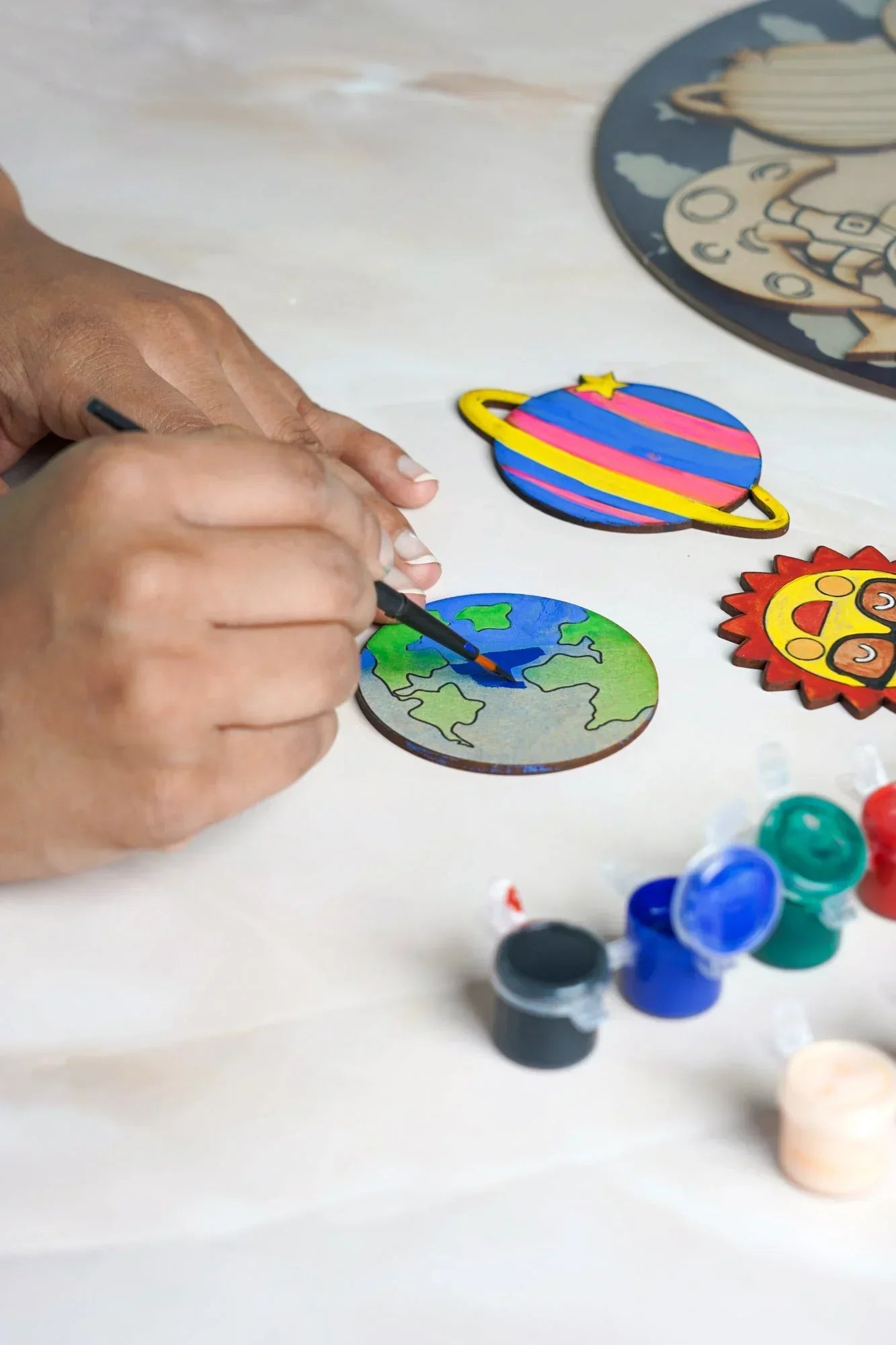 Transform your child's room into a cosmic sanctuary with the Cosmic Creations DIY Space Exploration Clock Kit. Watch as they dive into the mysteries of the universe, one brushstroke at a time, and proudly display their celestial creation for all to see. Get ready for hours of educational, hands-on fun that will leave your little astronaut over the moon!