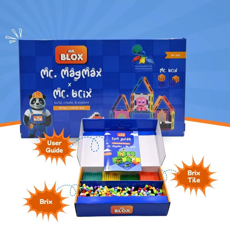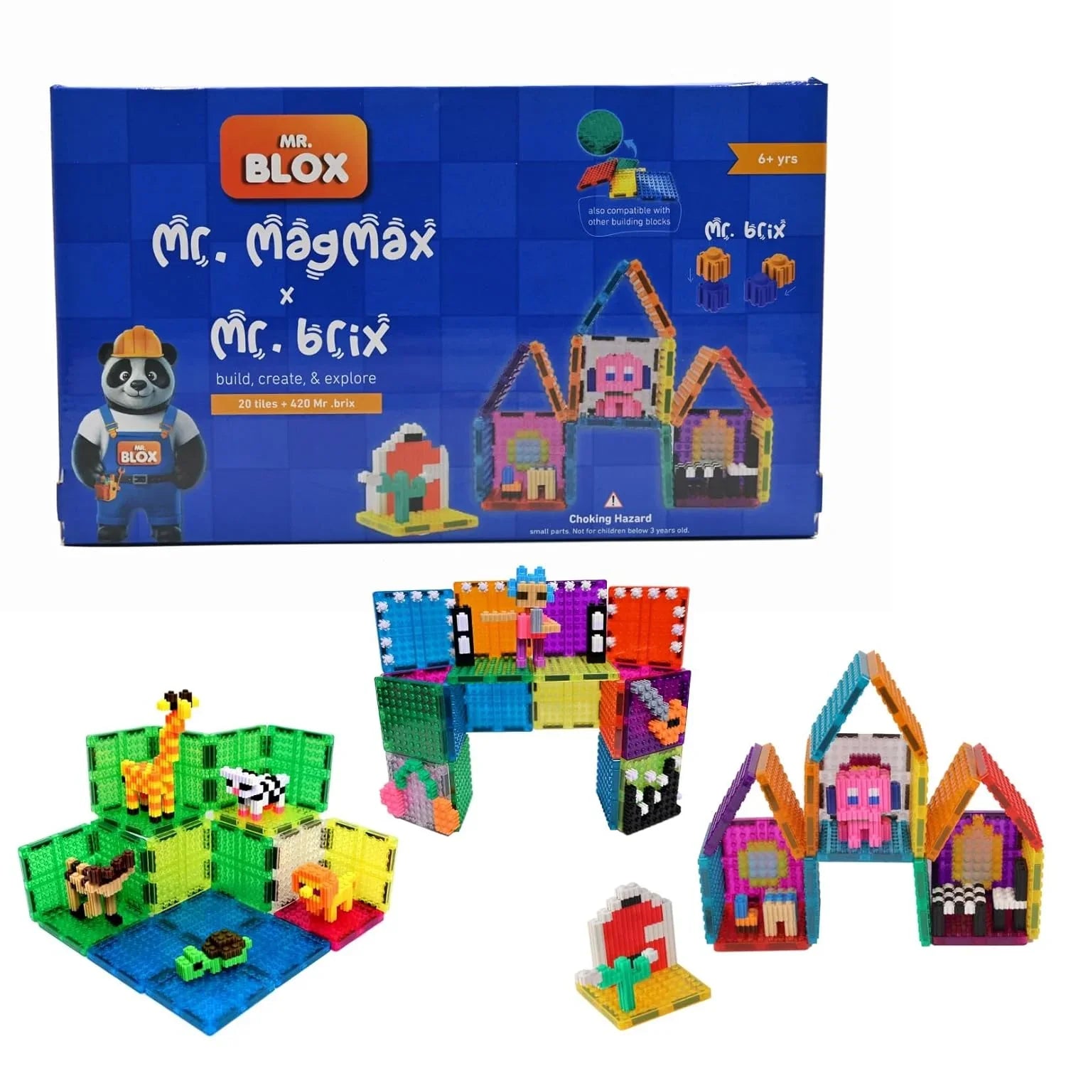 Mr. Magmax Hybrid Magnetic Brick Builder Set – 20 Tiles + 420 Brix for Creative Fusion Play (6+ Years)