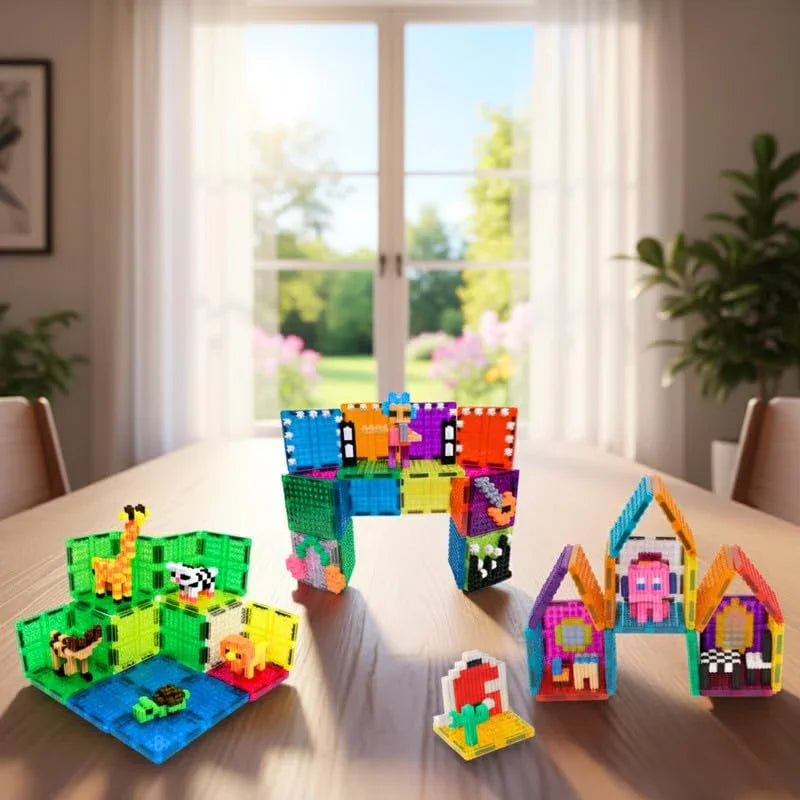 • Hybrid Construction System: Combines magnetic tiles with brick-style building pieces for a unique dual-play experience.