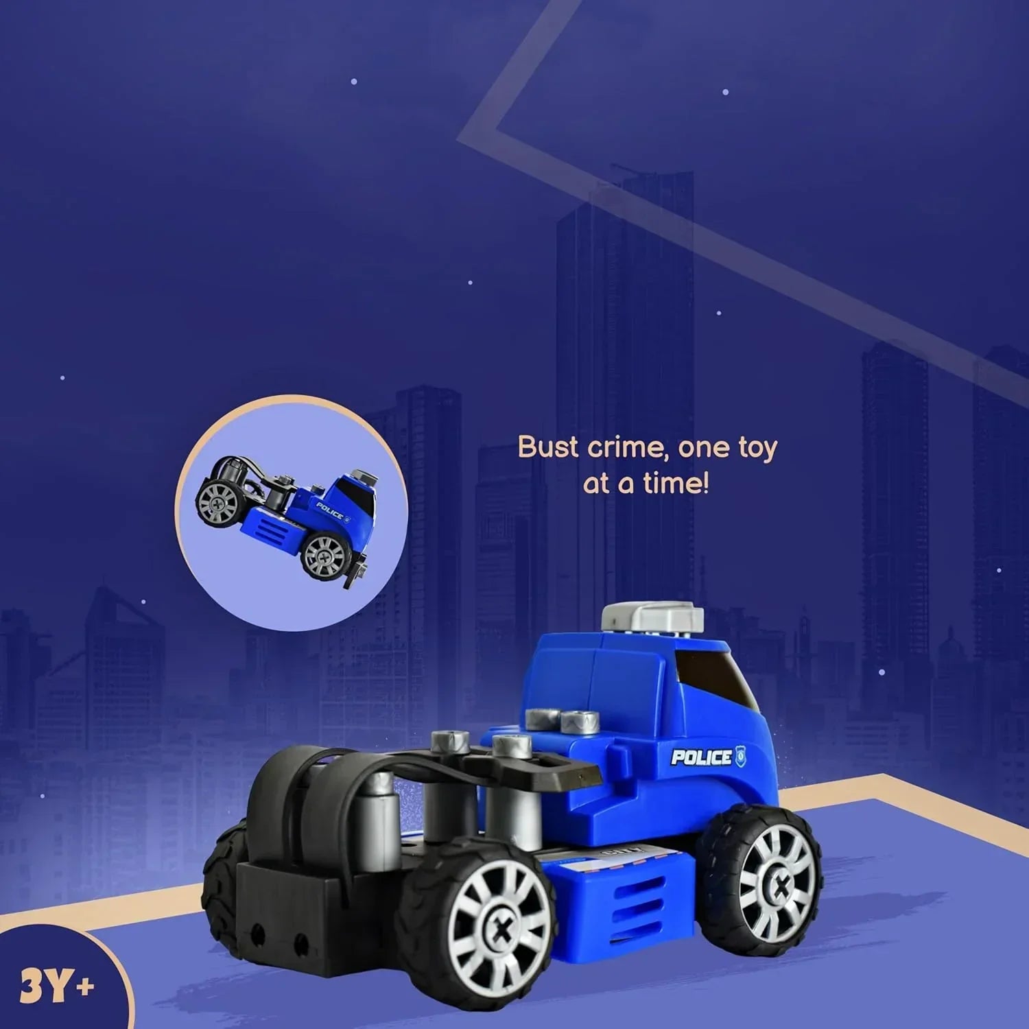 5-in-1 Transformable Fun: Assemble different crime-fighting vehicles including police cars and rescue trucks.