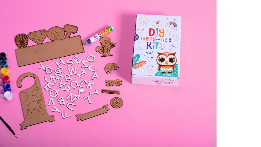 Teeny Tiny Superhero DIY Name Plate & Door Knob Kit – Room Décor Craft for Kids | iLearnNGrow