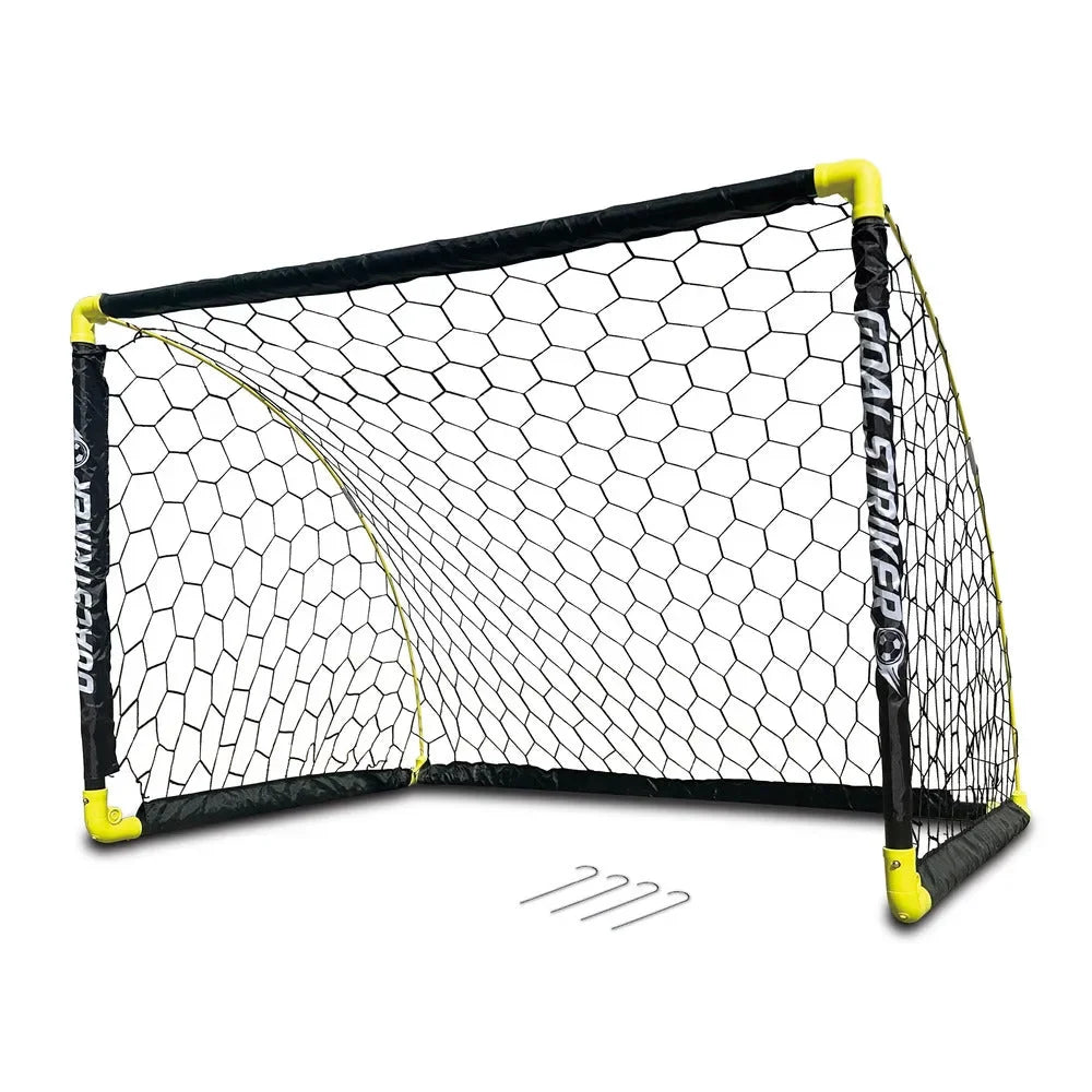 Includes Ground Stakes: Comes with 4 metal grass pegs to stabilize the goal on grassy surfaces or fields.