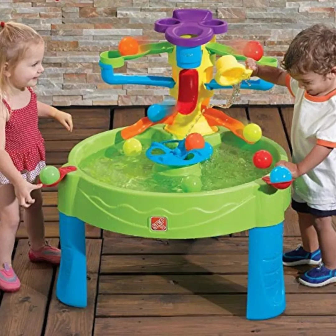 The Step2 Busy Ball Play Table is a one-of-a-kind interactive water playset designed to captivate toddlers and preschoolers aged 1.5 to 7 years by combining the excitement of ball play with the sensory joy of water activities. This unique activity table offers an innovative twist on traditional water tables by incorporating three distinct ball pathways, including a tall tower chute and ramps, along with side flippers to launch balls back into the basin. The centerpiece spinner adds dynamic movement as it swirls the balls around the water, providing endless fun and visual stimulation. Its open design encourages social interaction and cooperative play, making it a perfect choice for playdates or family fun.