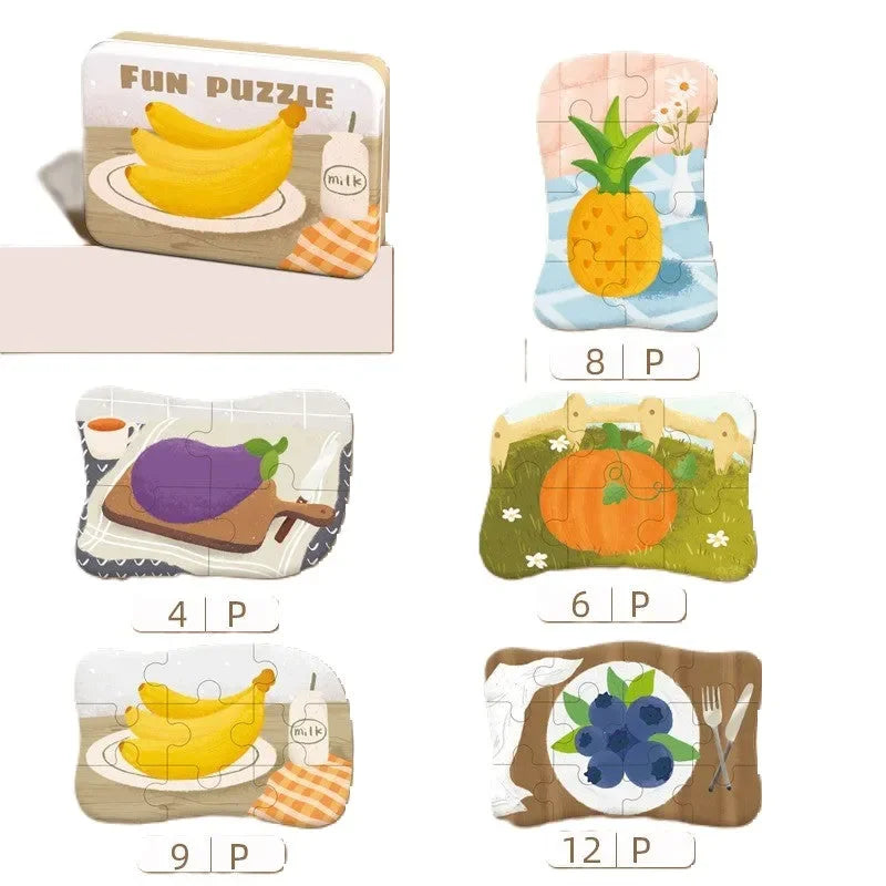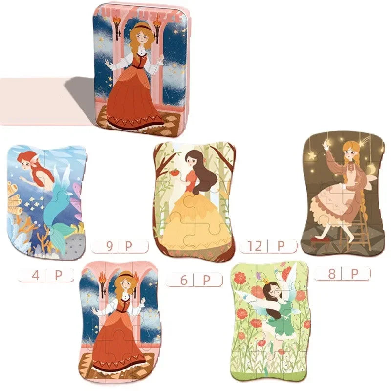 Progressive Puzzle Metal Box toddlers to learn colors, shapes, numbers, and different object recognition. 5 different puzzles in every box. Builds tactile, motor, thinking, and learning skills, help to develop children's cognitive abilities, hand-eye coordination, fine-motor skills. They are fun, brain-boosting, stimulating, and provide a learning experience while playing.