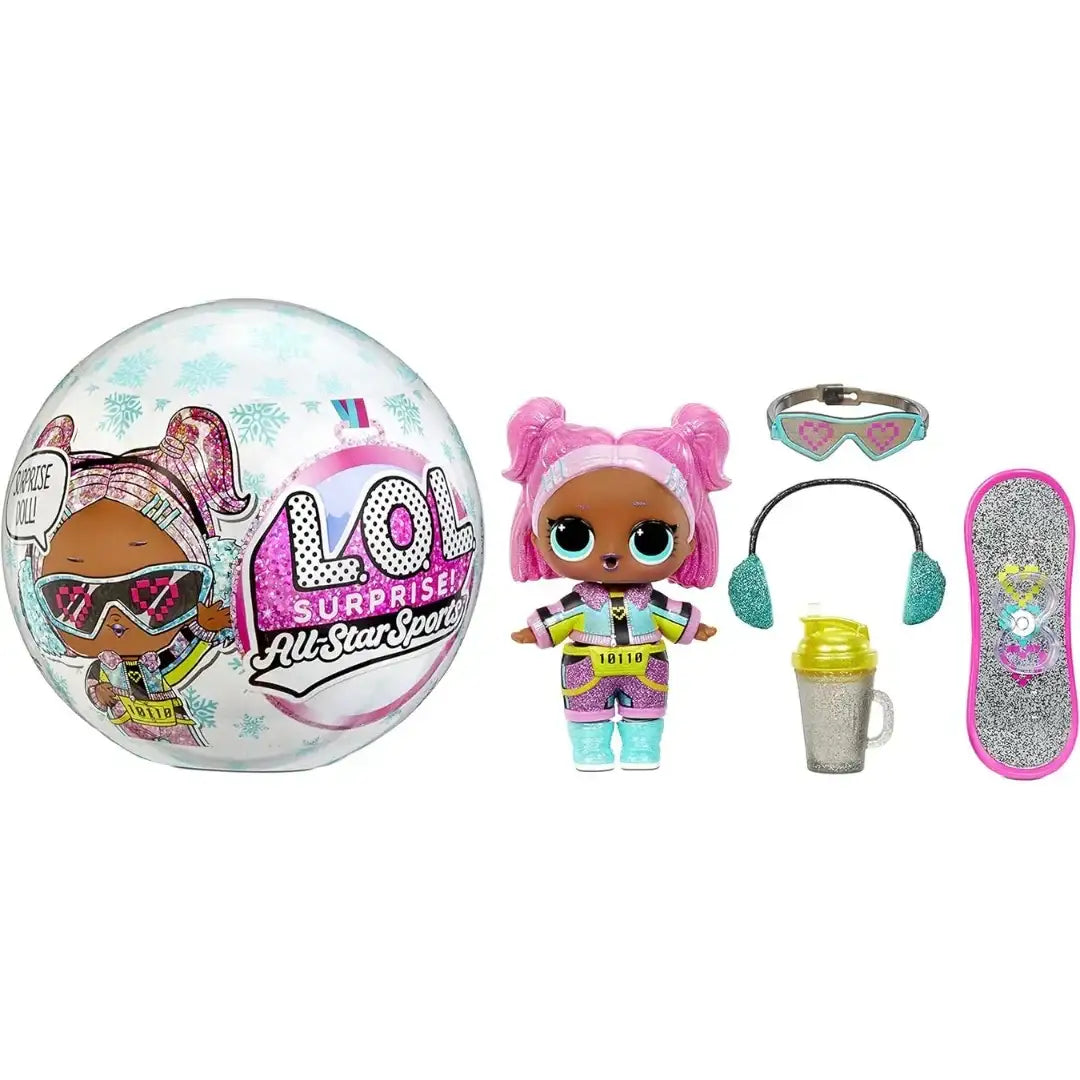 Get ready for a dazzling adventure on ice and snow with the L.O.L. Surprise! All-Star Sports Series 5 Winter Games Collectible Doll, an exciting new installment in the fan-favorite L.O.L. Surprise lineup. These fabulous All-Star athletes are back, glammed up with shimmering glitter details and dressed for winter sporting action. Each surprise capsule features one sparkly L.O.L. Surprise character dressed in her winter best—ready to compete in skiing, snowboarding, figure skating, hockey, or even bobsledding. Designed for children aged 4 and above, each doll set includes a total of 8 surprises that spark creativity, storytelling, and interactive play. From mix-and-match winter sports accessories to a water surprise and a collectible trading card, each unboxing offers a new experience.
