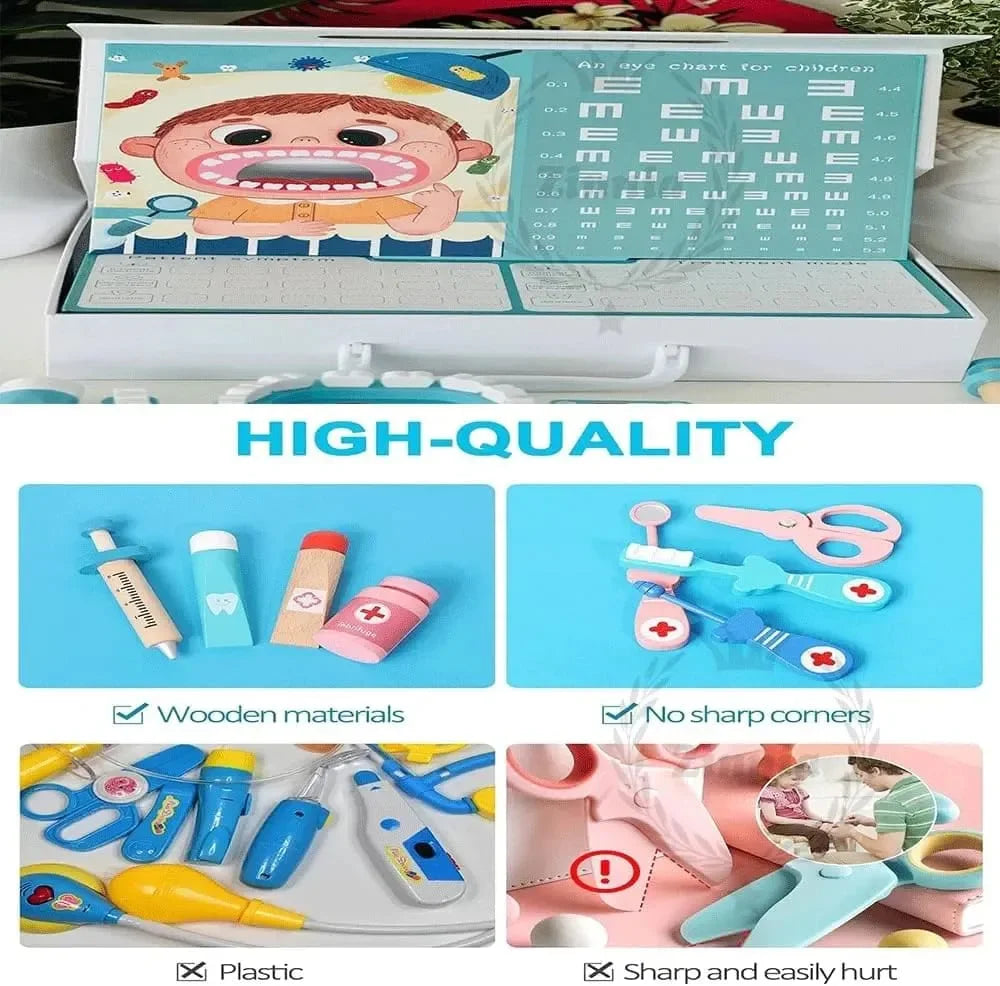 Complete Set – Includes dental tools, stethoscope, eye chart, medical cards, and multiple accessories for immersive role-play.