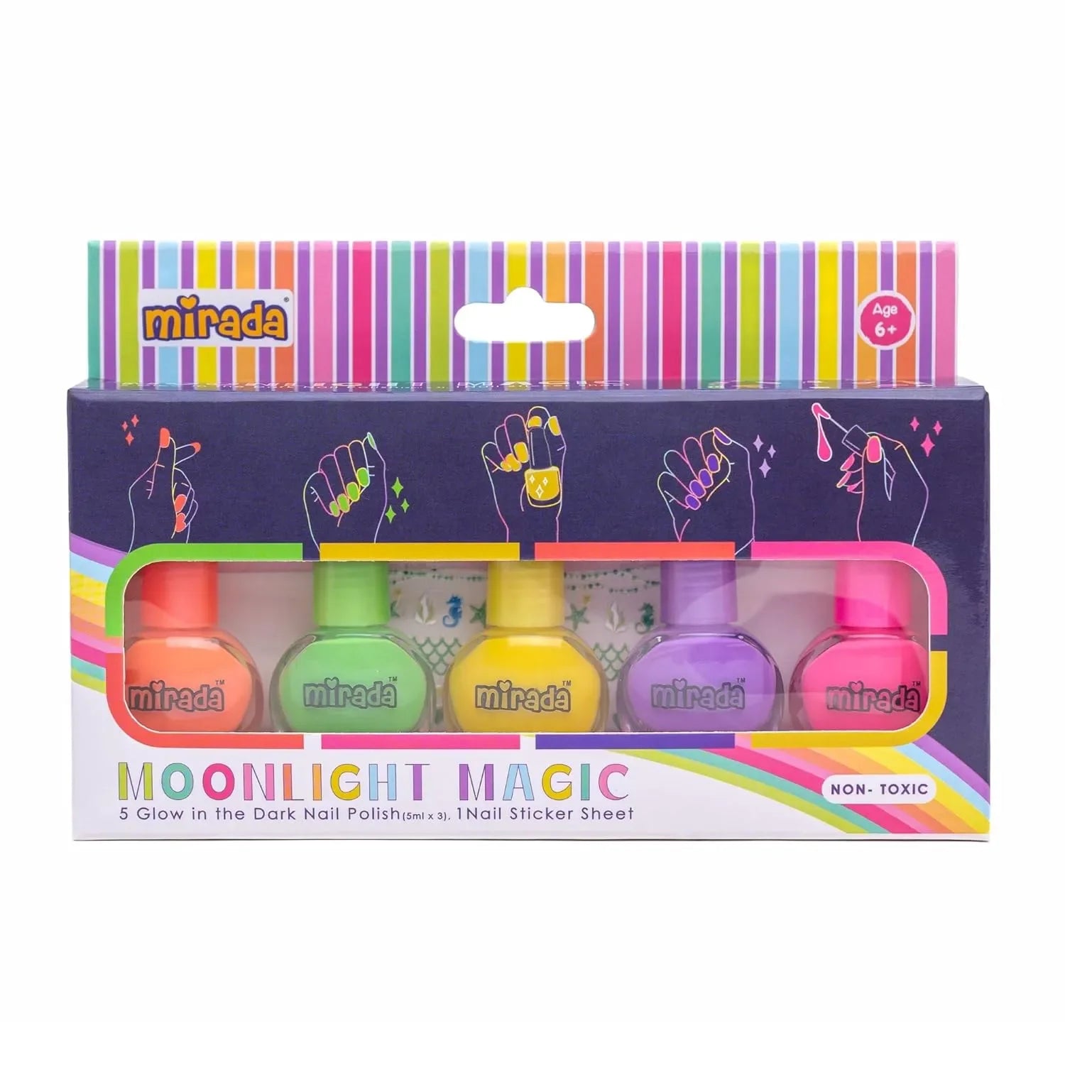 Mirada Moonlight Magic – Glow-in-the-Dark Nail Polish Set for Kids with Bonus Stickers
