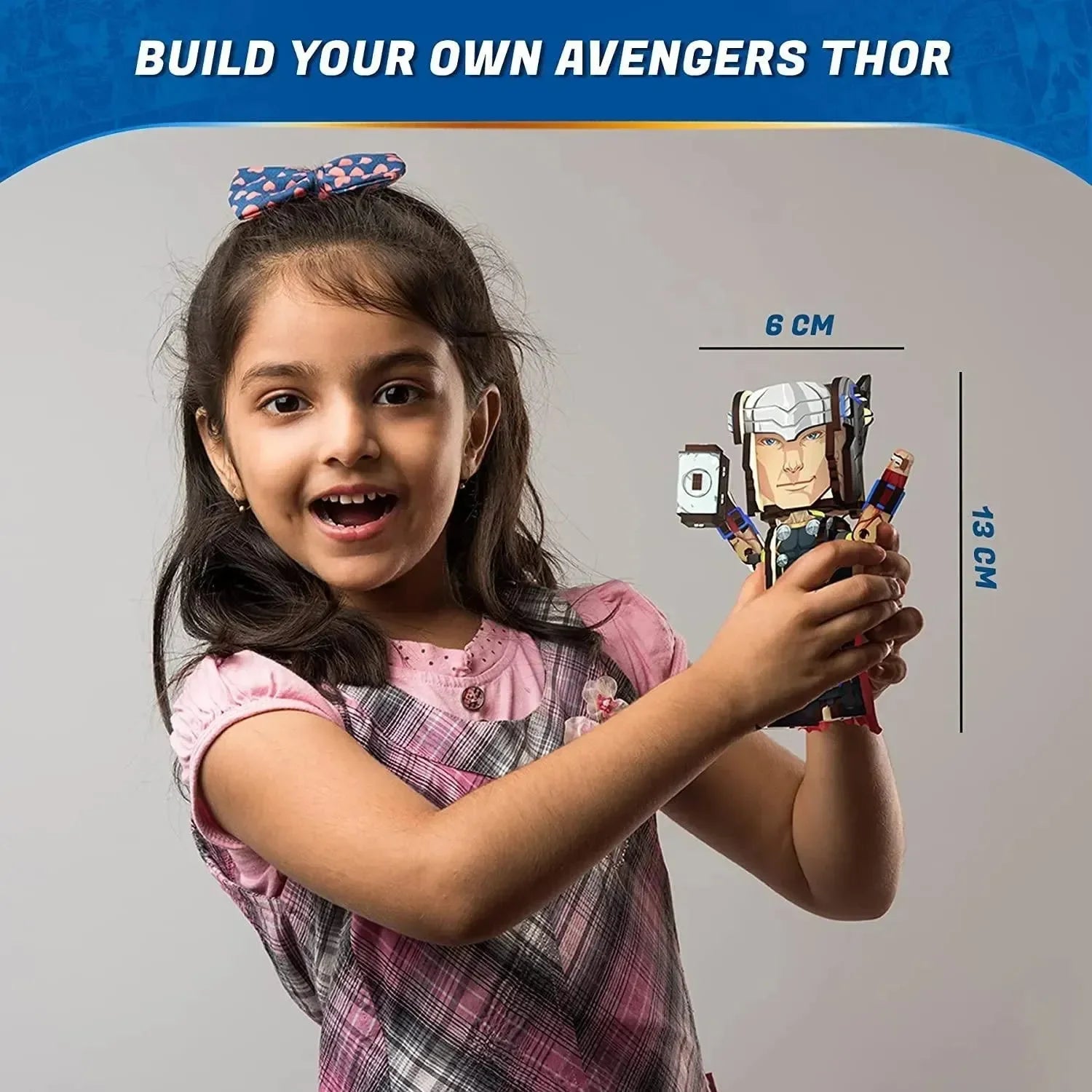 Skillmatics Buildables Thor is a hands-on DIY action figure kit that lets children aged 8 years and above bring the legendary God of Thunder to life—piece by piece. Designed to nurture creativity, engineering thinking, and motor skills, this STEM-certified construction kit transforms playtime into an interactive learning experience. Featuring over 55 high-quality wooden components, the set empowers children to assemble their own fully poseable Thor figure using only illustrated instructions—no glue, no mess, and absolutely no adhesives. Every part is precision-cut from eco-friendly, splinter-free wood, ensuring child safety and long-term durability.