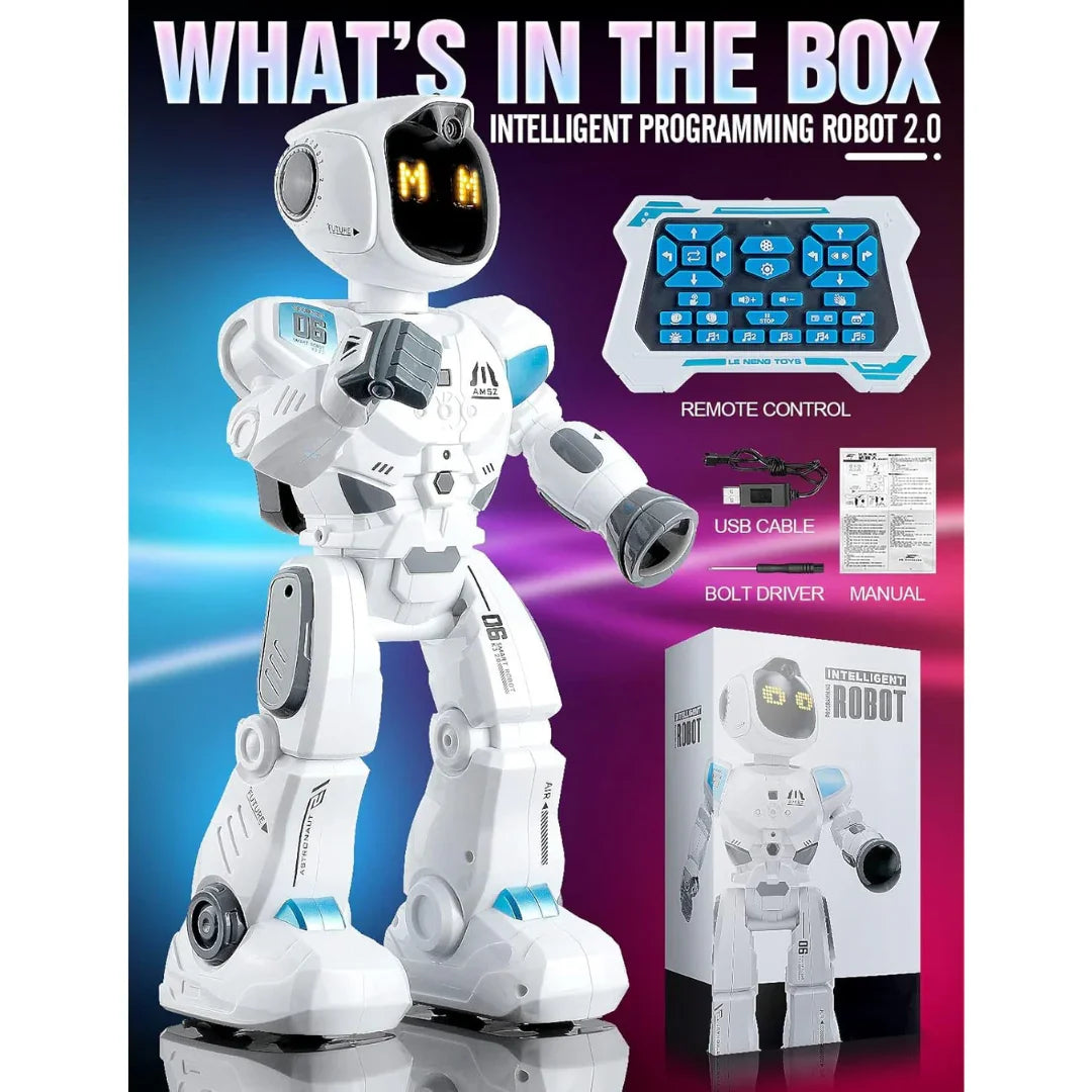 Designed with premium materials and a sleek build, this robot engages children through gestures, remote commands, and programmable routines. With the ability to execute up to 50 custom actions, it introduces kids to logical thinking, problem-solving, and even early coding concepts—all while keeping them entertained with dancing, music, storytelling, and gymnastics features.