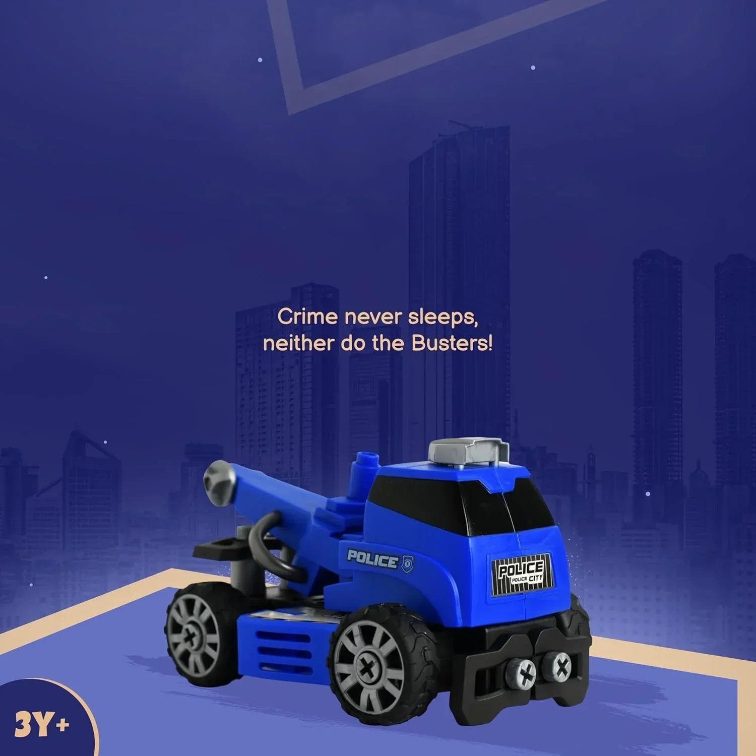 54-Piece DIY Construction Set: All components needed to build five unique police-themed vehicles or setups.