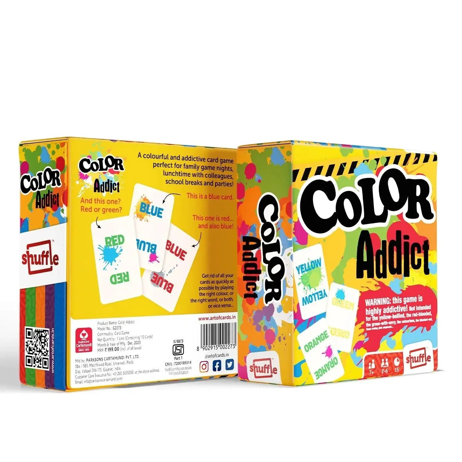 Experience the dynamic fun of Parksons Cartamundi Private Limited's MH Colour Addict Card Game, a versatile and engaging game suitable for all ages. Whether it's a family game night, a break at school, or a lively party, Colour Addict brings people together with its simple yet strategic gameplay. Not only does it offer colorful and addictive entertainment, but it also incorporates an educational twist by introducing words into the mix, promoting language development and cognitive skills. With fast-paced rounds and a compact, portable design, Colour Addict is perfect for on-the-go gaming and ensures endless fun for any occasion. Get ready to immerse yourself in the joy of vibrant colors, engaging words, and interactive gameplay with Colour Addict—the ultimate card game for all!
