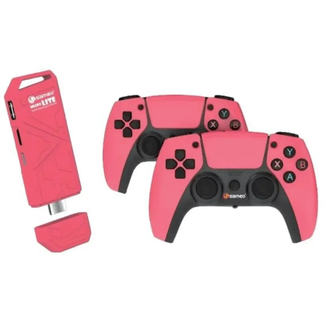 Sameo Micro Lite HDMI Game Stick – 10,000 Built-in Retro Games | 4K Ultra HD | Dual Wireless Controllers | Red
