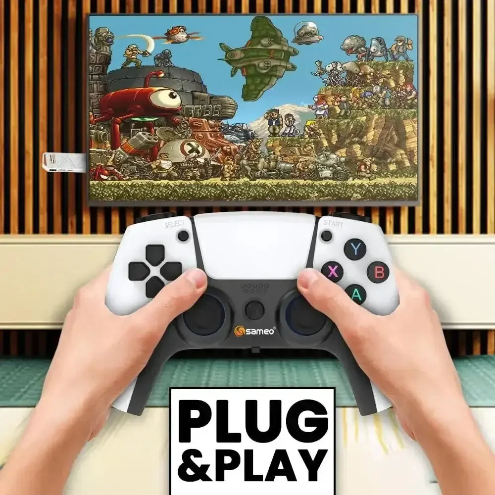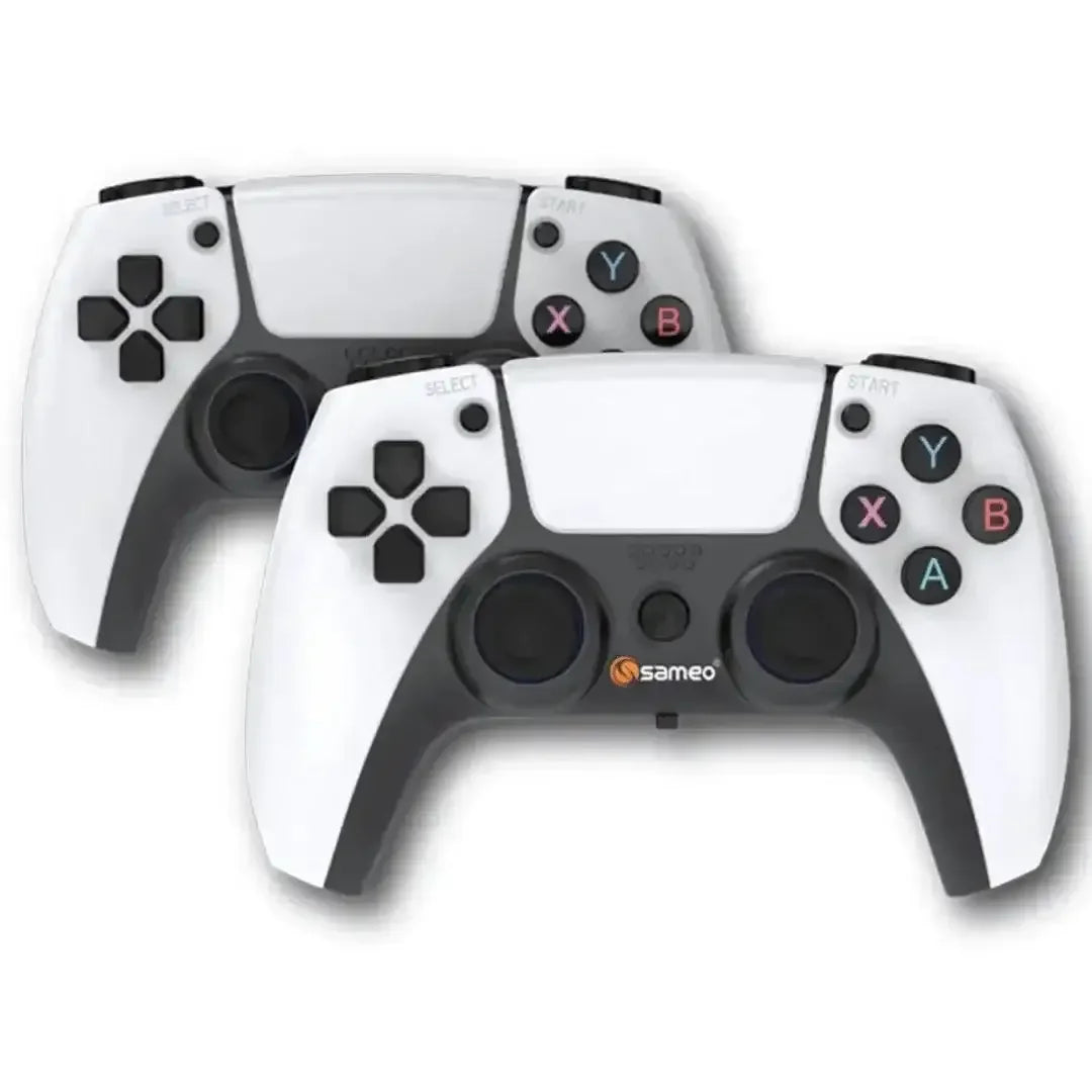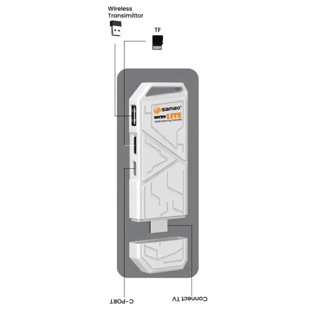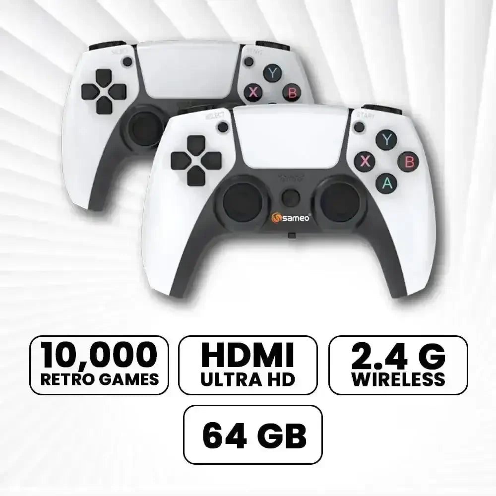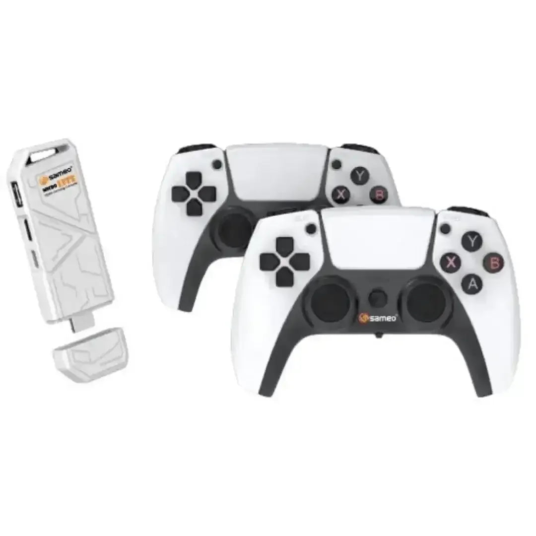 Unleash the power of classic gaming with the Sameo Micro Lite HDMI Gaming Console in White, a compact yet powerful retro gaming system built for today’s living rooms. Featuring an impressive library of 10,000 built-in retro games, this versatile game stick offers an authentic arcade experience with modern enhancements. Whether you're a nostalgic adult gamer or introducing timeless classics to your kids, this console supports dual-player gaming with two 2.4GHz wireless controllers, ensuring freedom of movement and responsive gameplay. With support for 40 emulator formats, you can dive deep into a wide variety of genres—from adventure and racing to shooting and puzzle games. The original 3D rocker and anti-skid cockpit controls offer tactile feedback and precision, replicating arcade-style gameplay. With 4K Ultra HD HDMI output, your favourite retro games look better than ever, while multi-media features allow for music playback and video viewing. Housed in a sleek, futuristic Mecha design, the Sameo Micro Lite in White is as stylish as it is functional—perfect for gifting, home entertainment, or pure nostalgia.