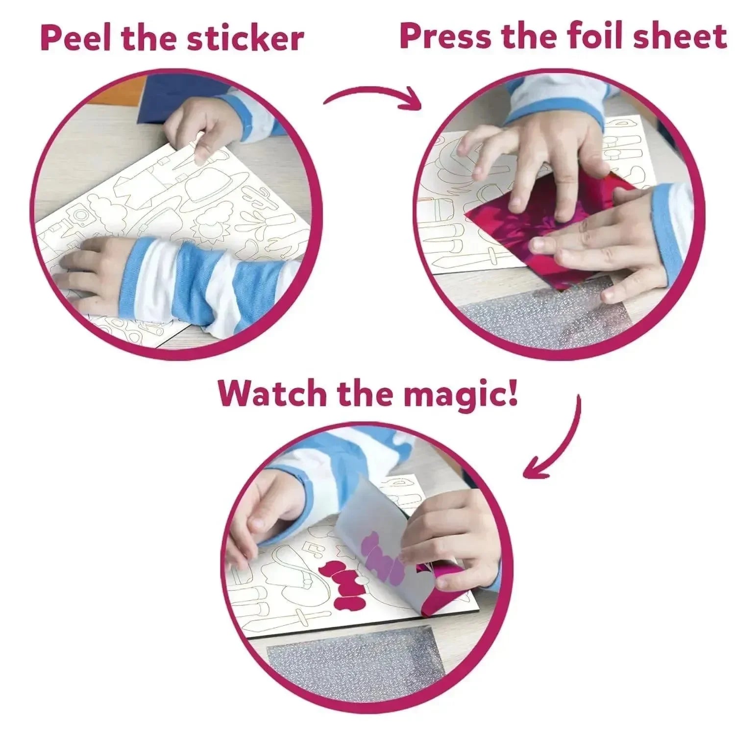 • Mess-Free and Easy to Use: No glue, no scissors, no mess; children simply peel, press, and reveal vibrant foil designs.