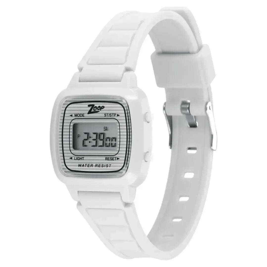 Introducing the Zoop By Titan Digital White Dial Plastic Strap Watch for Kids, model NR16017PP01, a sleek and practical timepiece designed to cater to the active lifestyles of children. With a crisp white digital dial, this watch offers easy readability and modern flair. The durable plastic strap ensures comfort and flexibility during wear, making it suitable for all-day adventures. Whether for school, sports, or playtime, this Zoop watch is the perfect accessory to keep kids on track while adding a touch of style to their everyday ensemble.