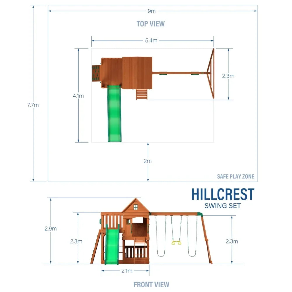 The Hillcrest is ideal for families seeking a reliable, beautifully crafted wooden playset that stimulates both physical and imaginative play. Its compact footprint fits well into smaller yards while delivering a rich range of play options, making it a highly practical and enjoyable investment for children’s outdoor recreation.