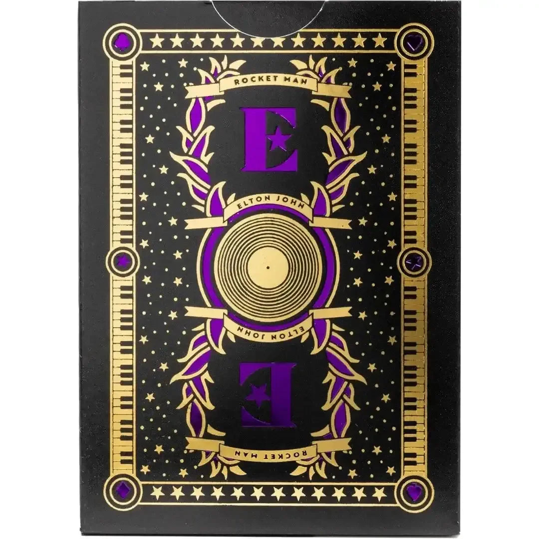 Official Elton John Tribute Deck: Features performance-inspired court cards and Rocket Man-themed card backs, celebrating Elton John's musical legacy.
