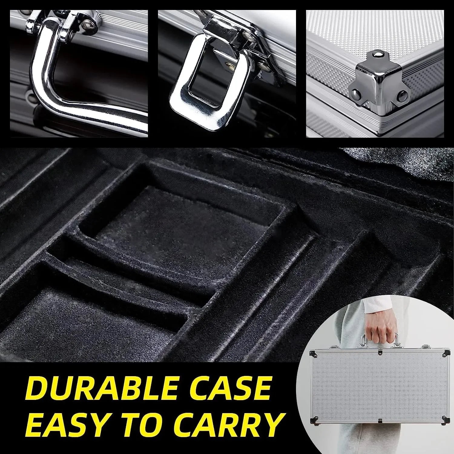 Features a lightweight aluminum-finish case with foam interior to protect, organize, and transport chips and accessories with ease.