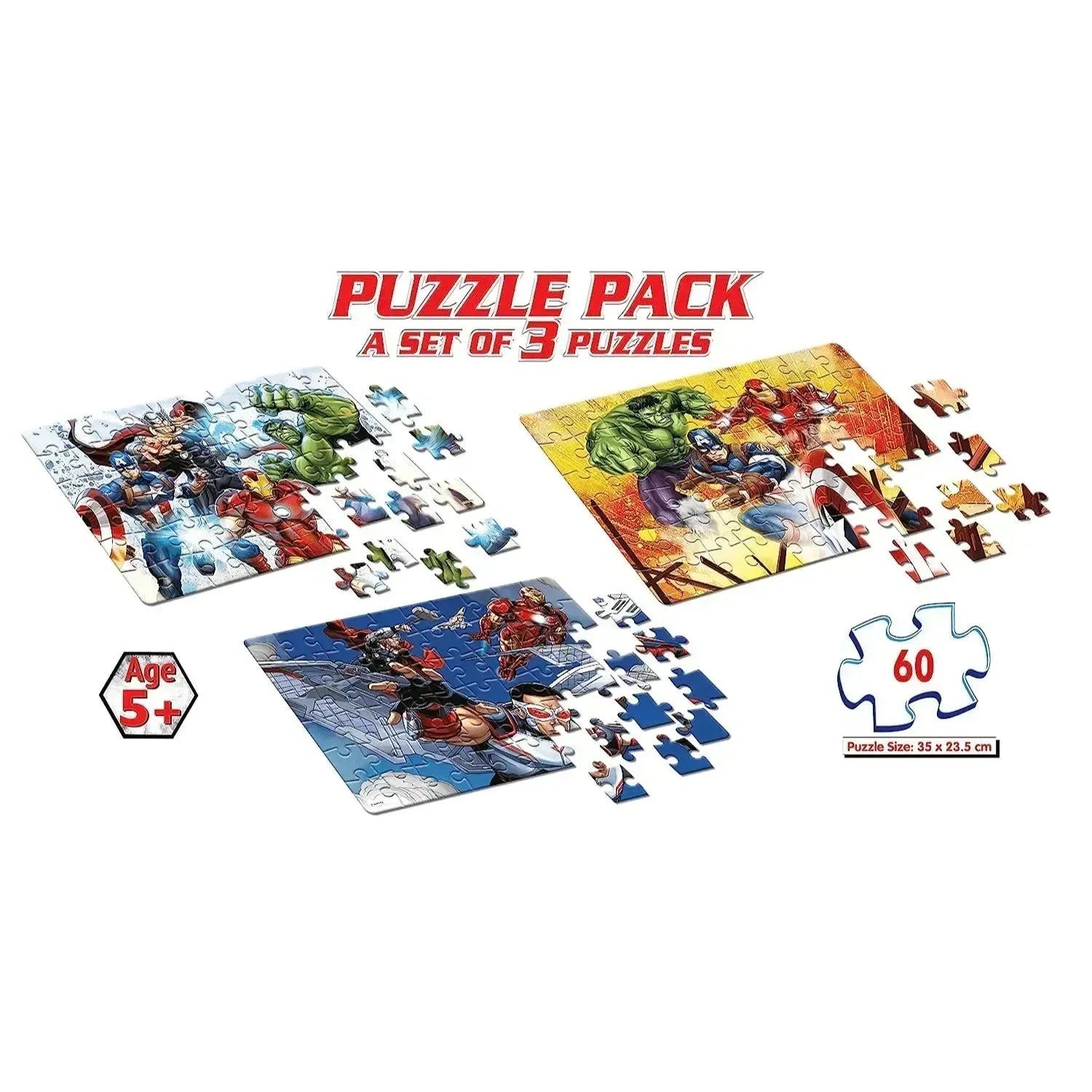 3-in-1 Puzzle Value Pack: Contains three individual puzzles, each with 60 pieces, delivering a total of 180 engaging puzzle pieces themed around Marvel’s Avengers.