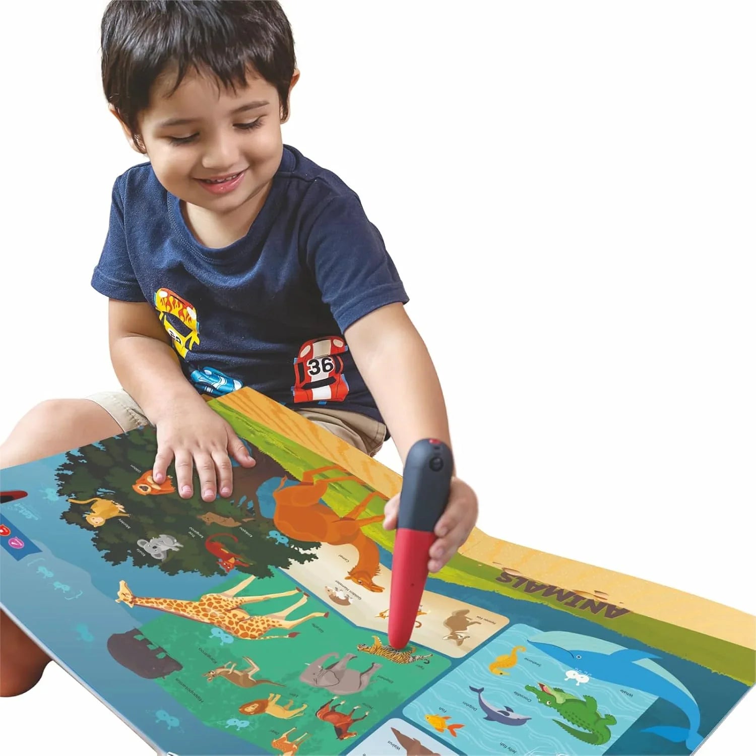 Smart Talking Pen: Uses advanced audio-on-paper technology—simply tap to hear pronunciations, fun facts, or songs that make learning interactive and exciting.