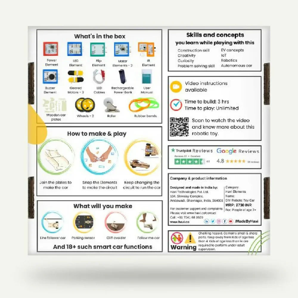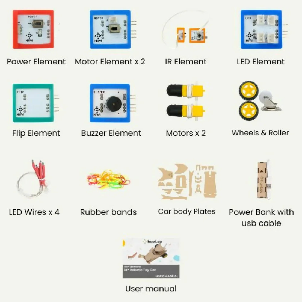 • Build your own Robot car using eco-friendly wooden plates and Havi Elements