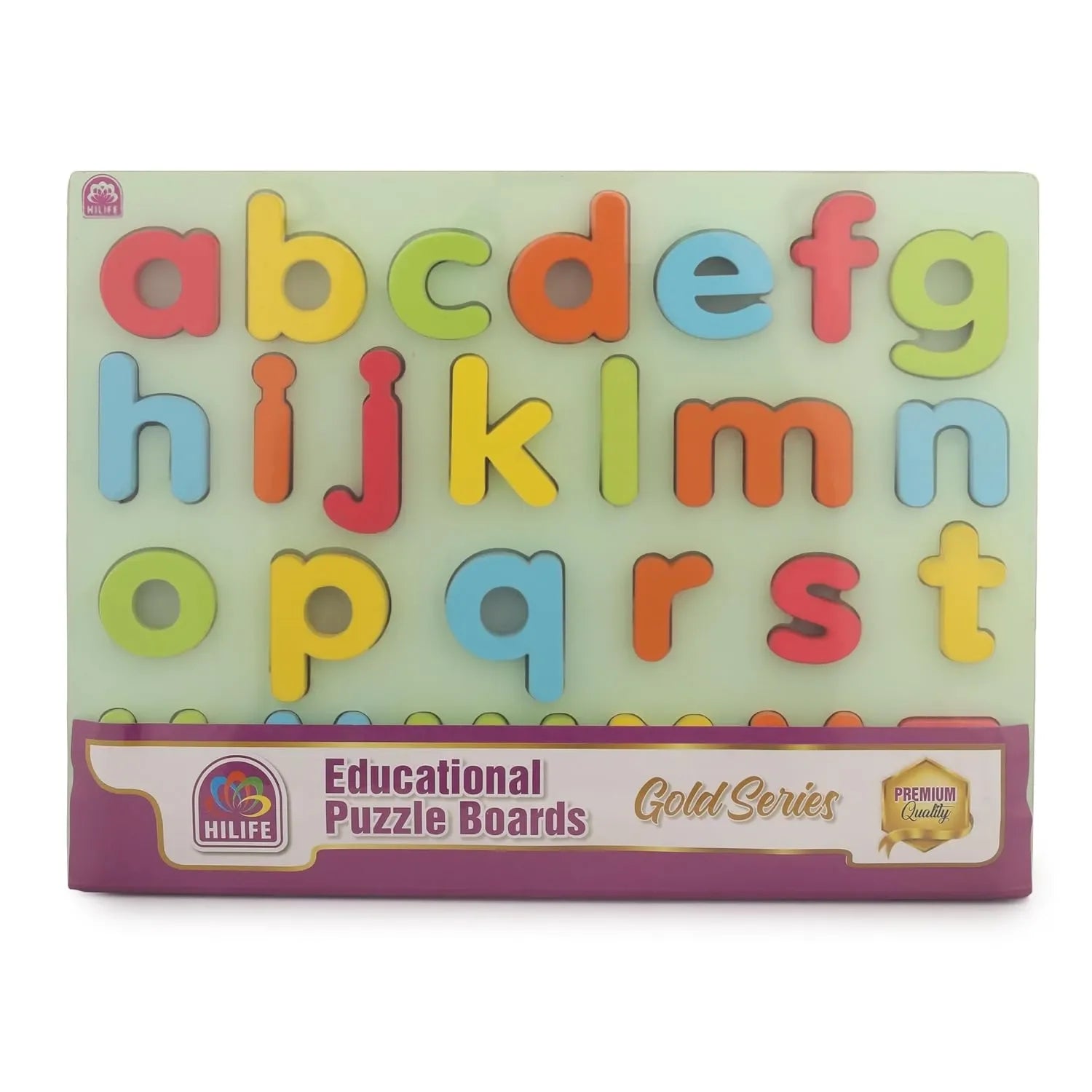 HILIFE Educational Alphabet Small Letters Puzzle Board – Wooden Peg Puzzle for Toddlers, Gold Series (a-z, 26 Pieces)