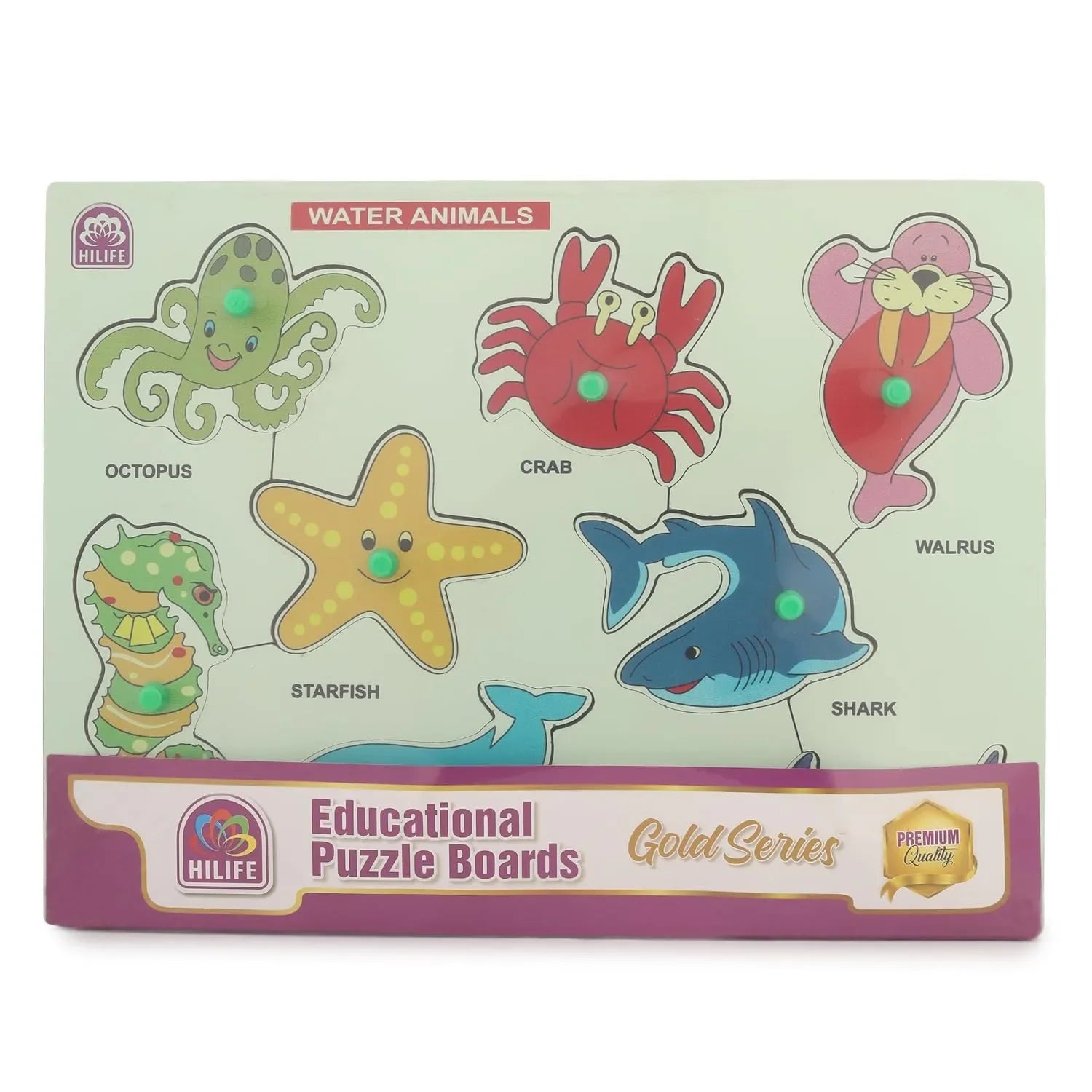 Introduce your child to the enchanting world beneath the waves with the HiLife Educational Water Animals Puzzle Board – Gold Series, a thoughtfully designed wooden peg puzzle that combines education with entertainment. Created to stimulate the minds of toddlers and preschoolers, this puzzle features a collection of popular aquatic animals—from dolphins and turtles to whales and octopuses—carefully illustrated and cut into individual puzzle pieces. It’s more than just a toy—it’s a foundation for early learning that blends visual recognition, language development, and fine motor skills into a single engaging experience.
