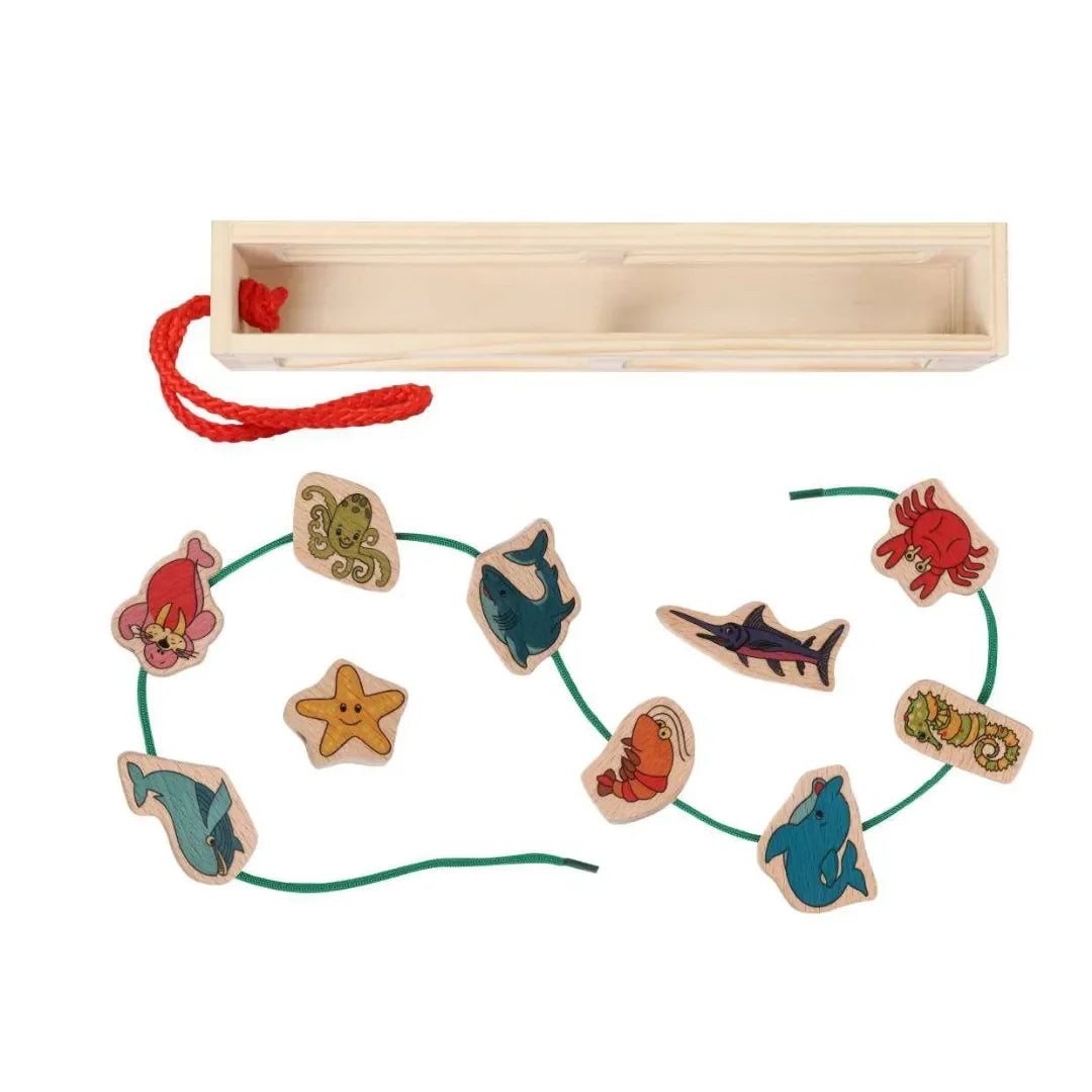 HILIFE Kids Lacing Wooden Toys (134) – Educational Sea Animal Puzzle with Storage Box
