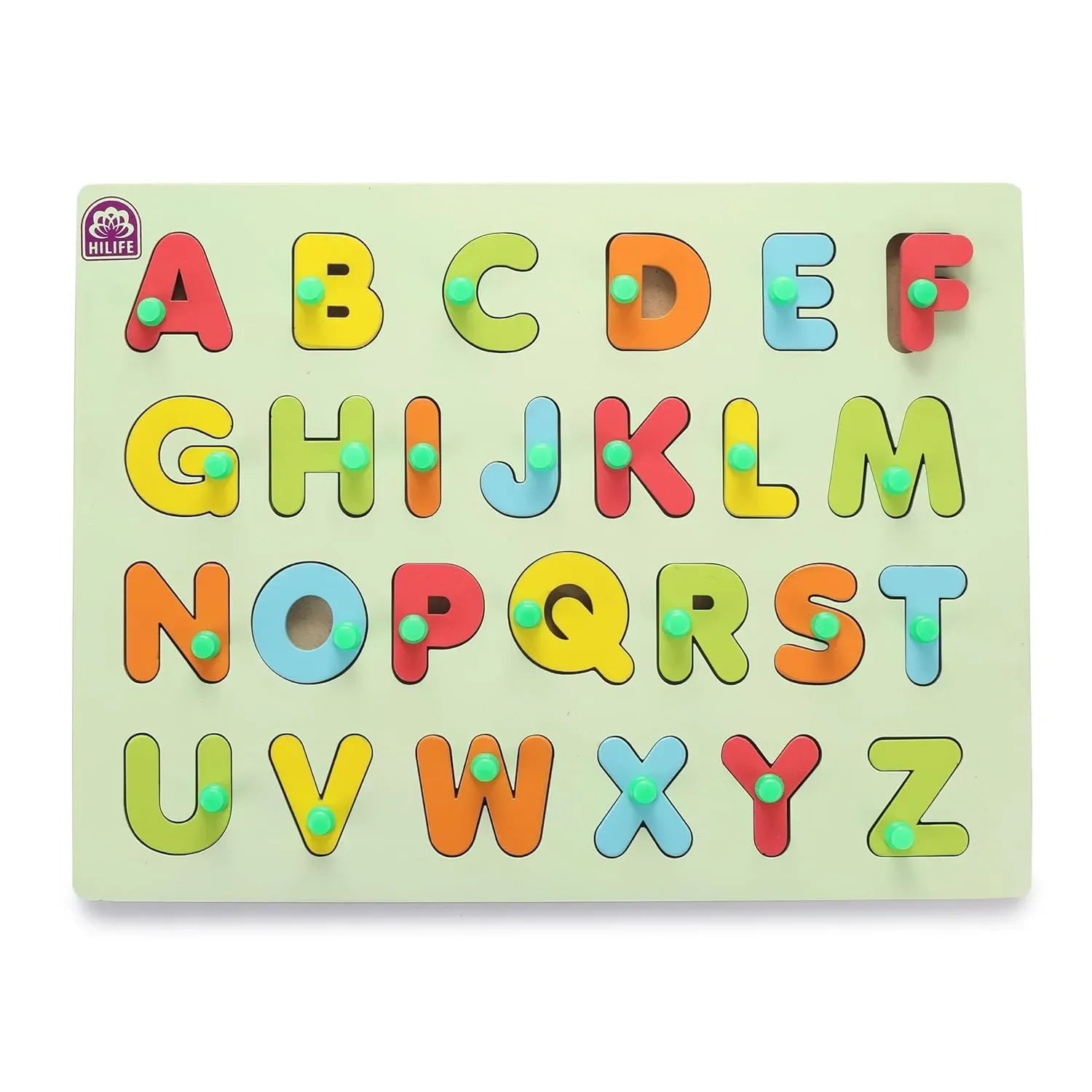 HILIFE Wooden Alphabet Puzzle Board – A to Z Letters – Gold Series Educational Toy with Pegs for Toddlers – Premium Learning Puzzle for Early Letter Recognition and Motor Skills Development