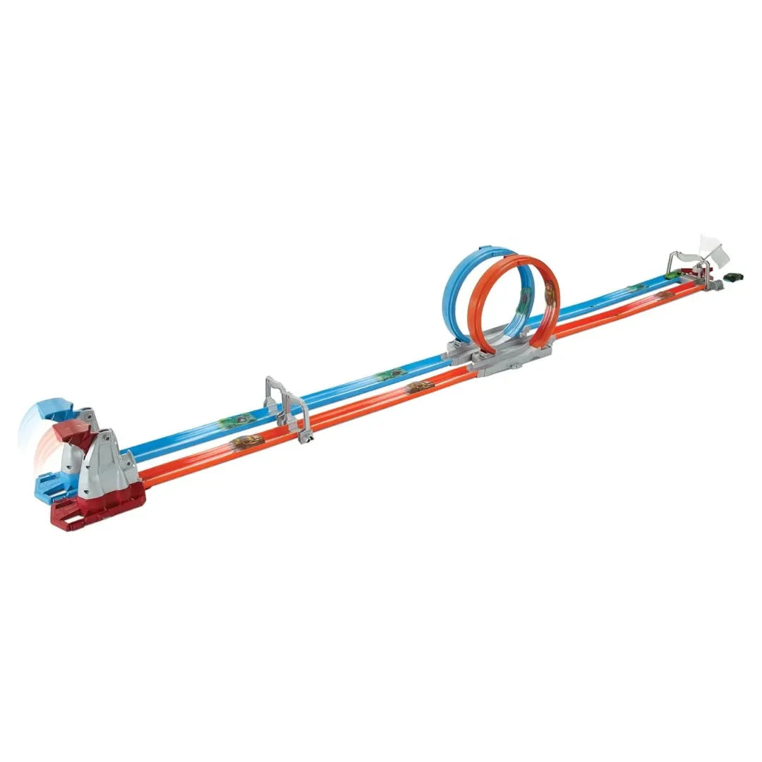 Hot Wheels Double Loop Dash GFH85 – Dual Loop Drag Race Track Set with Launcher & Winner Flag | 12+ ft Track | Includes 1 Hot Wheels Car