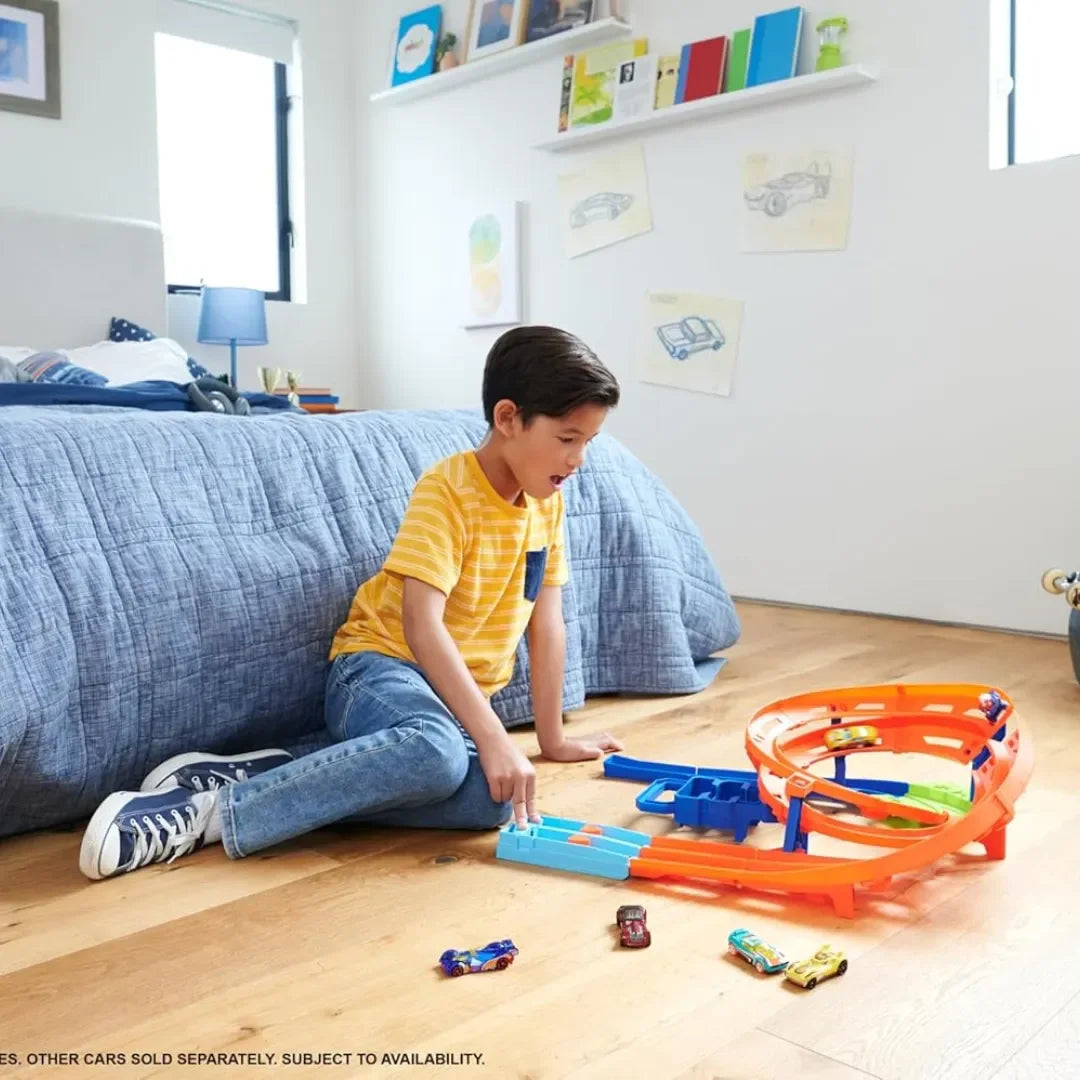 Hot Wheels Whip Around Raceway HTK17 – Looping Circuit Track Set with Dual Launchers & Crash Zone | Includes 2 Cars | Foldable Carry Case