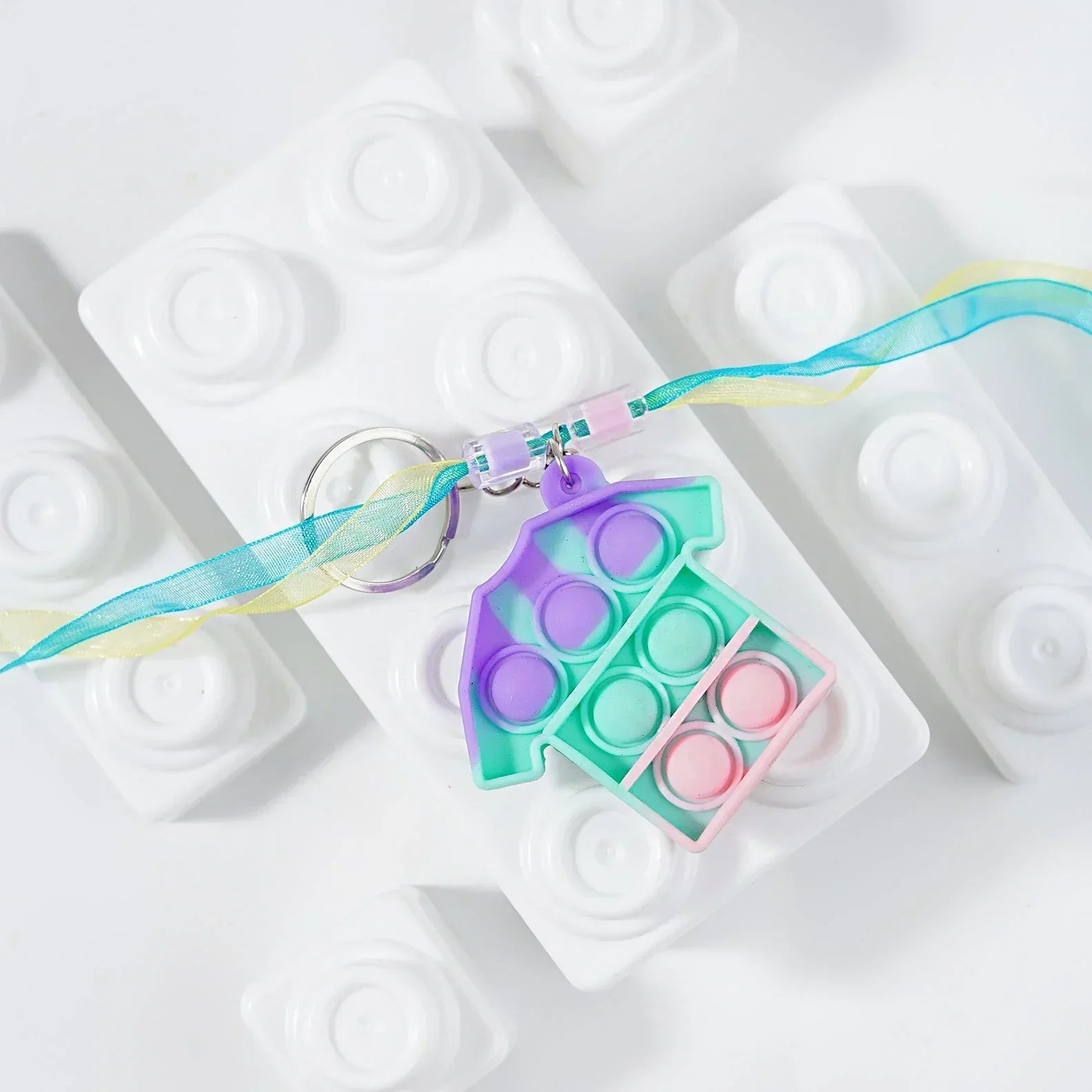 Add a burst of joy and interactivity to Raksha Bandhan with the ilearnngrow Pop It Rakhi Multiple Shapes. This rakhi features a range of vibrant, sensory Pop It fidget toys in different fun shapes, perfect for kids who love tactile play. Made from safe, non-toxic silicone, these rakhis are gentle on the skin and provide endless popping fun while celebrating the special bond between siblings. Lightweight and durable, this rakhi is a perfect blend of tradition and trendy sensory play.