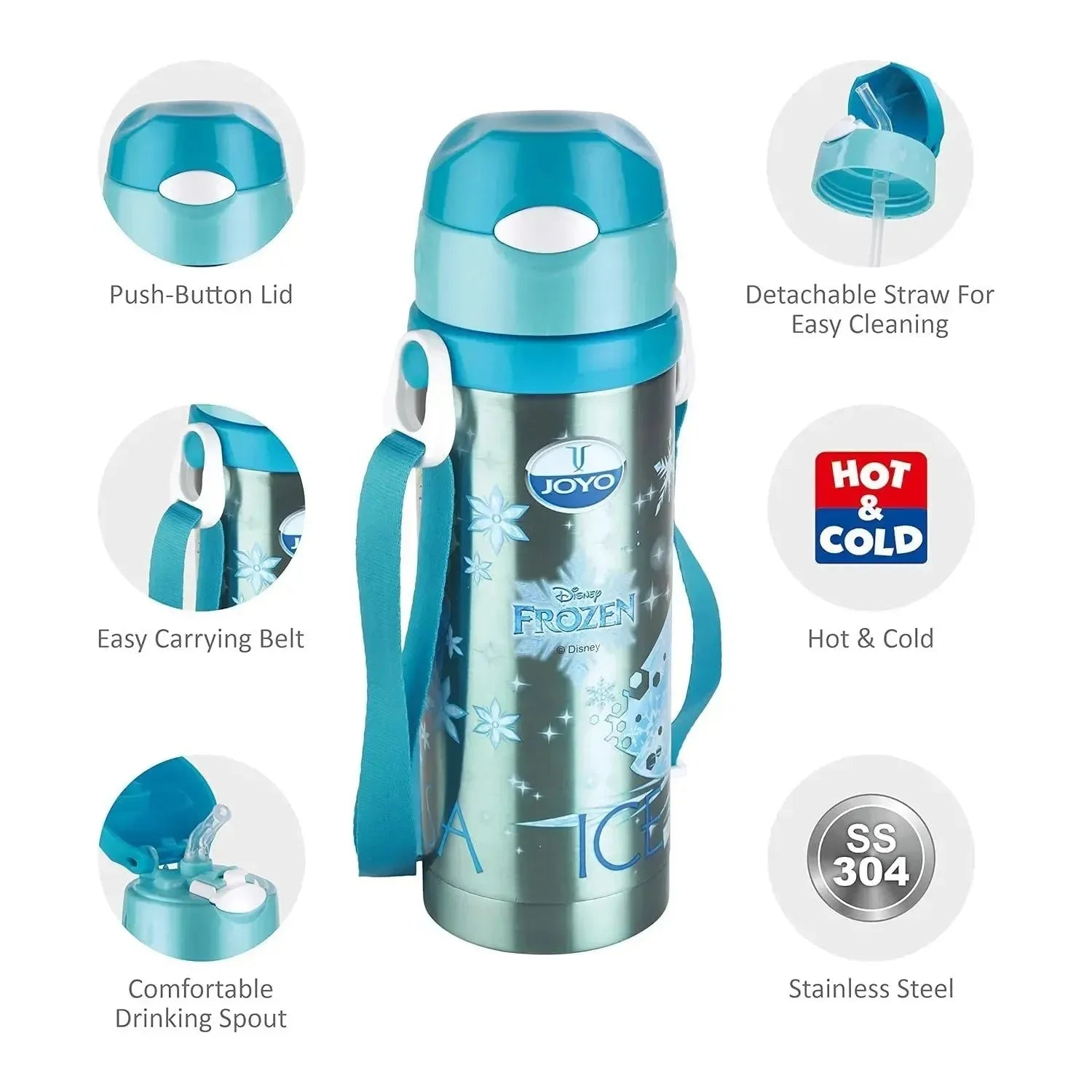 Joyo Cool Mate 450 ml Stainless Steel Vacuum Insulated Kids Sipper Water Bottle | Hot & Cold | Push Button Lid | BPA-Free | Disney & Marvel Character Designs