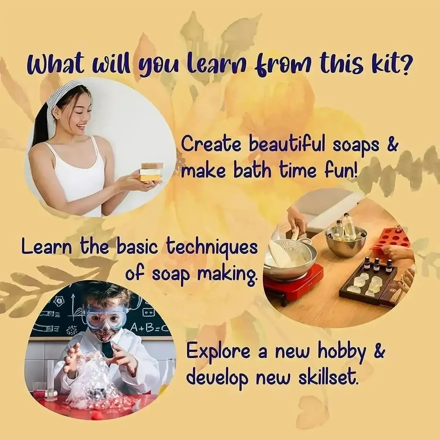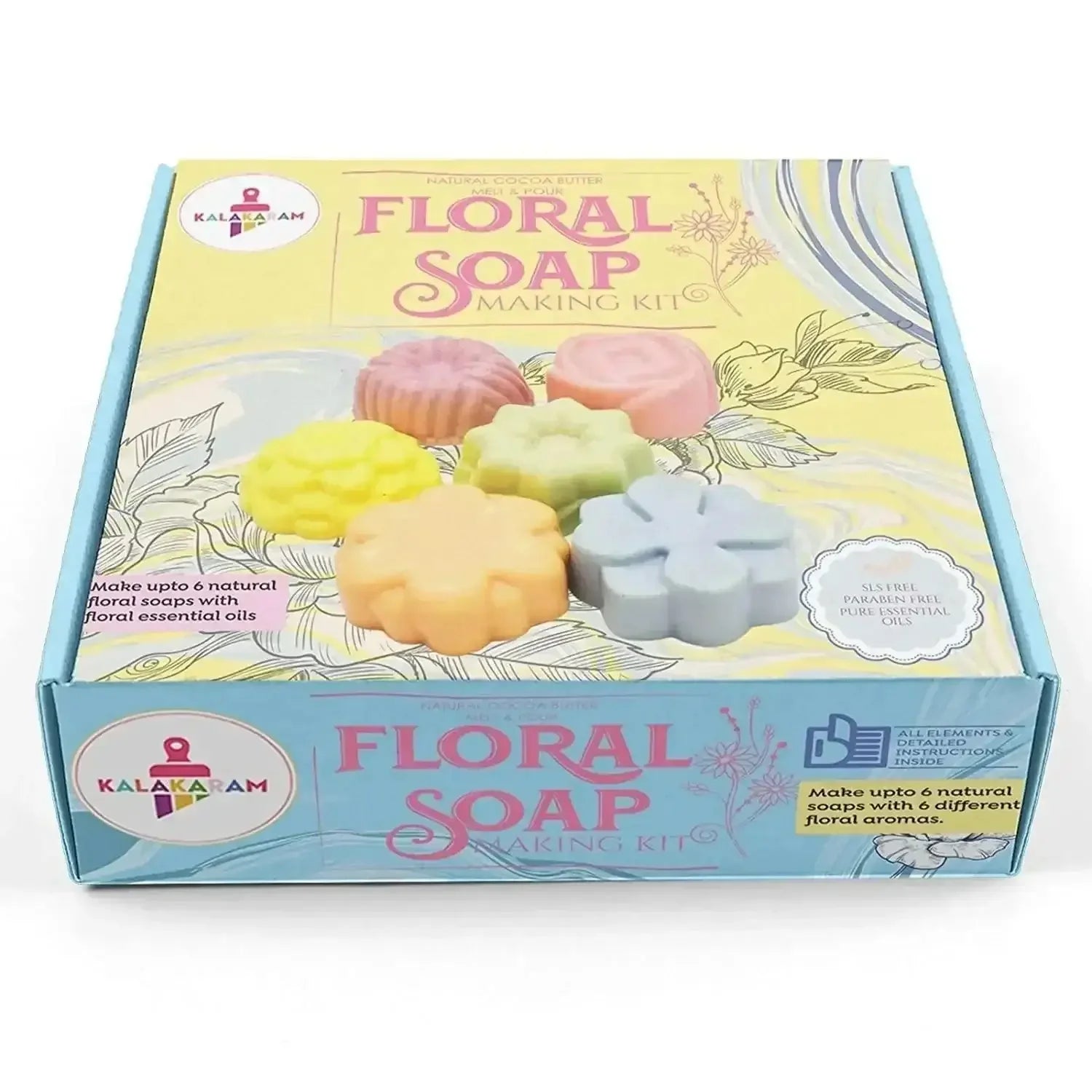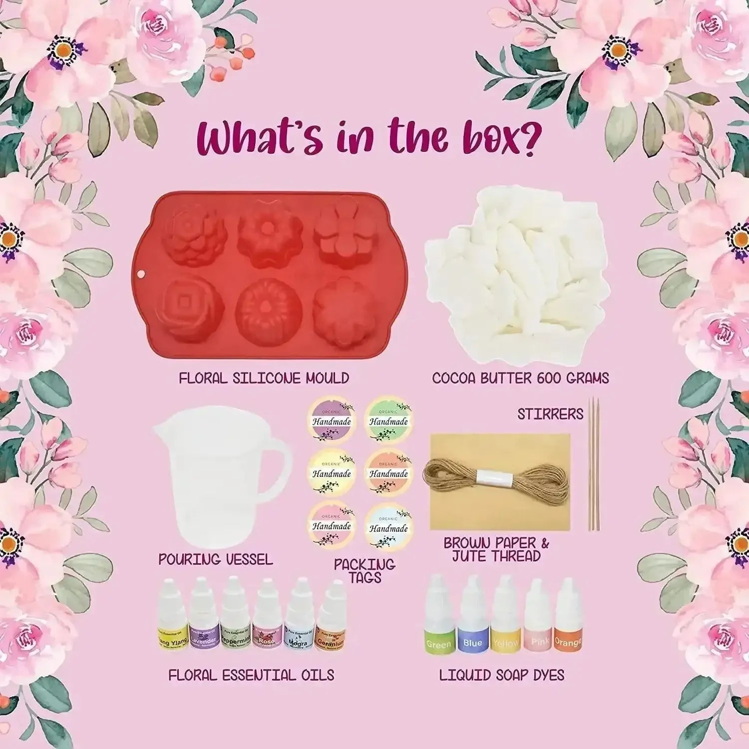 Kalakaram Floral Soap Making Kit – DIY Natural Cocoa Butter Soaps | SLS & Paraben-Free | Includes Essential Oils, Flower Mould & Soap Dyes | Make 6 Handmade Soaps | Creative Gift for Kids & Adults