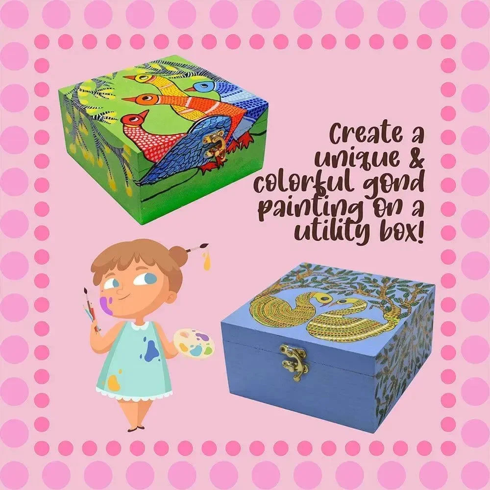 Kalakaram Make Your Own Gond Painting Utility Box – Traditional Indian Art DIY Kit | Includes Templates, Tools, and Guidebook | Cultural Art & Craft Kit for Kids & Adults | Functional Decorative Art Box