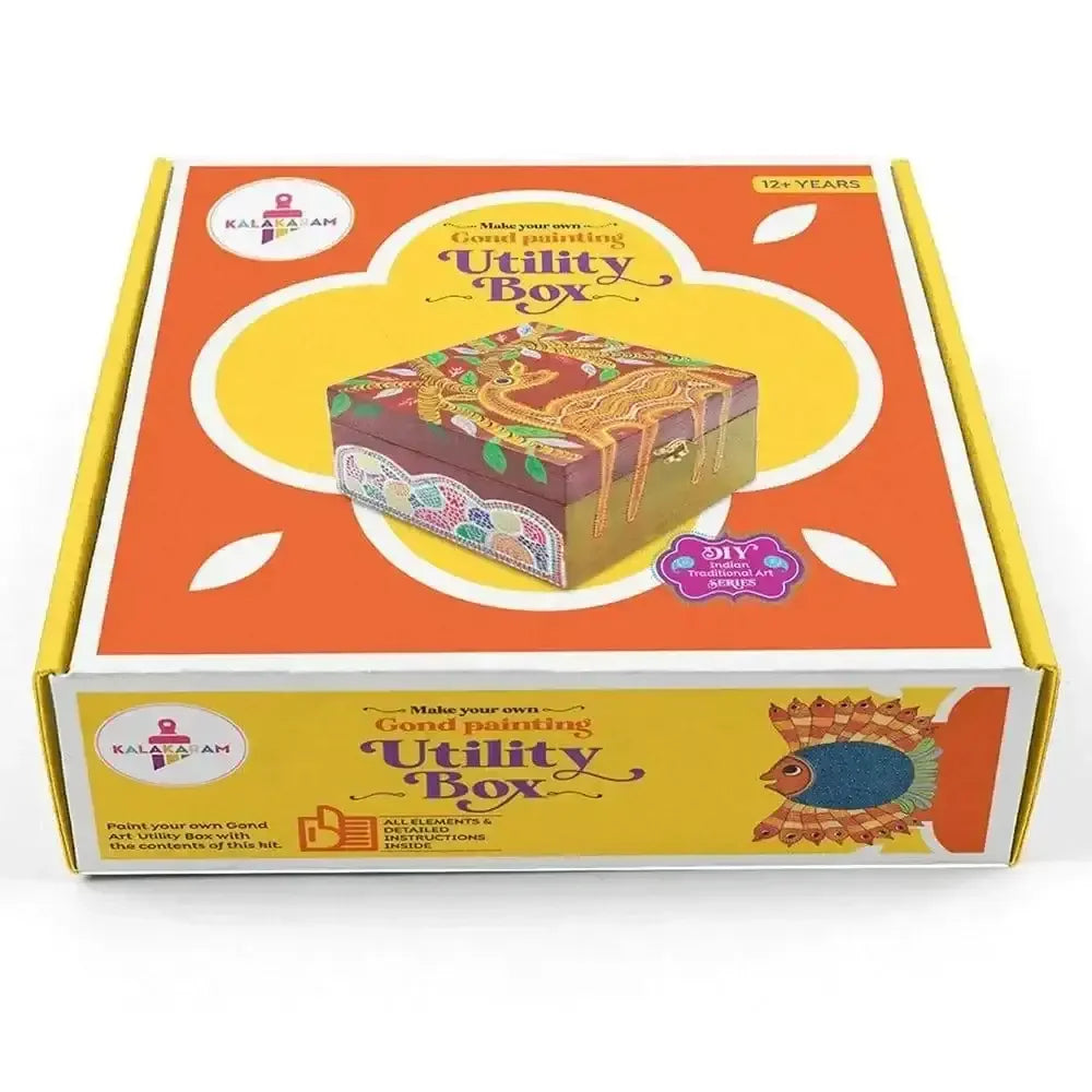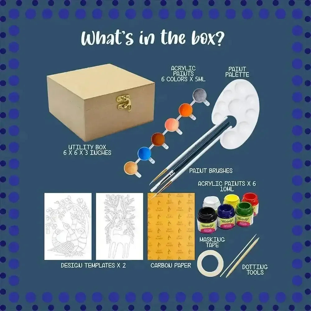 Kalakaram Make Your Own Gond Painting Utility Box – Traditional Indian Art DIY Kit | Includes Templates, Tools, and Guidebook | Cultural Art & Craft Kit for Kids & Adults | Functional Decorative Art Box