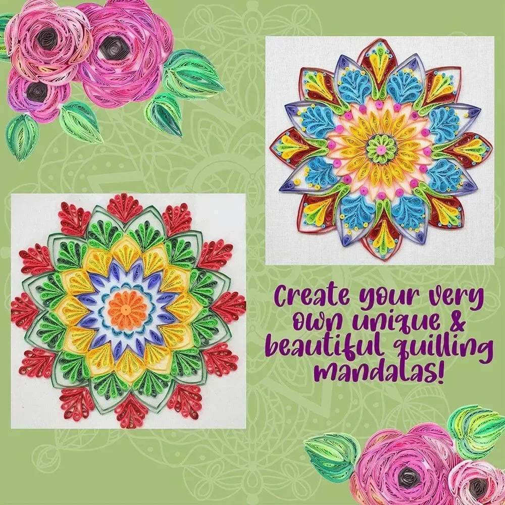 • 📘 Step-by-Step Illustrated Guide: Comes with a detailed, beginner-friendly manual that shows how to make various shapes and assemble them into a mandala pattern.