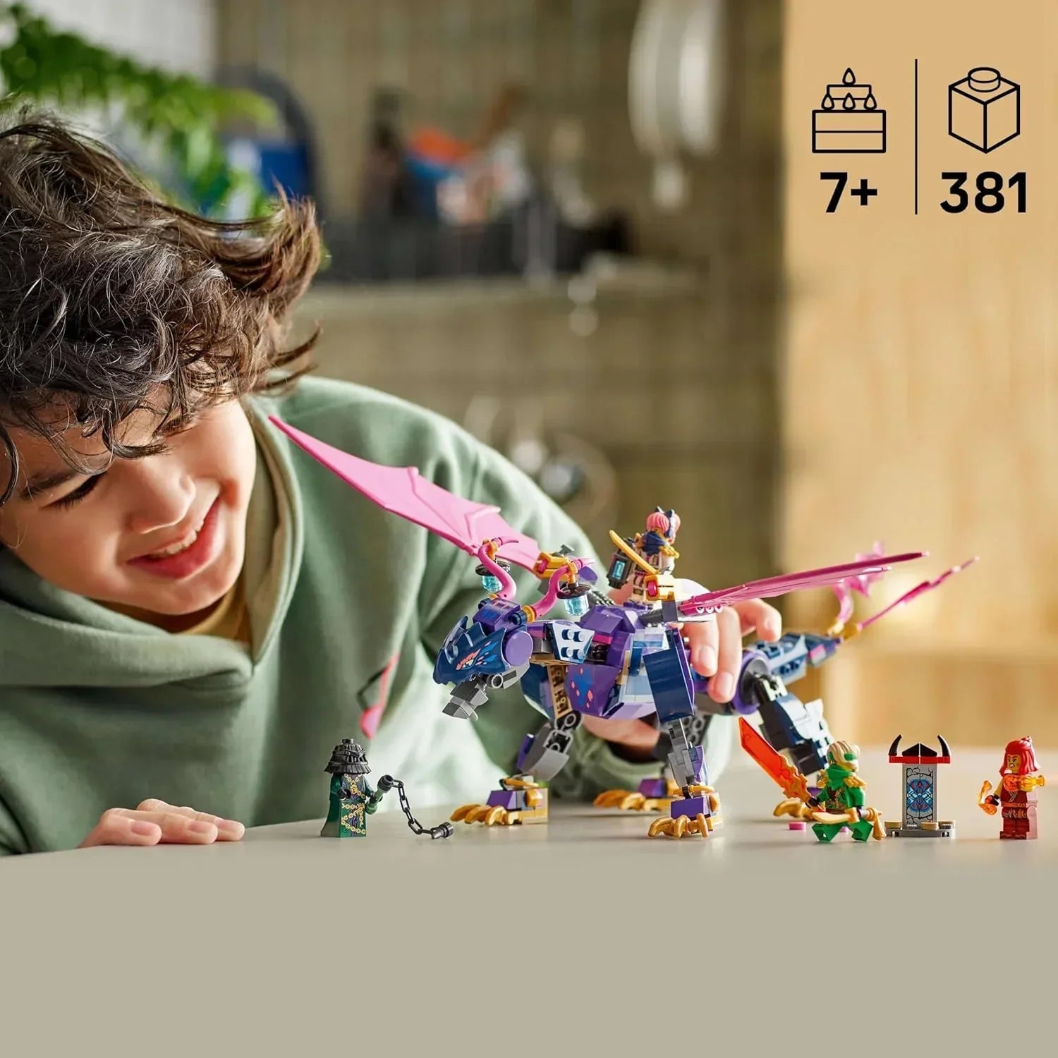 The set features Rontu, a mighty and highly posable dragon, equipped with movable wings, tail, legs, jaw, and head. Two seating positions on its back let minifigures ride into battle, while under-wing stud shooters give kids the power to launch attacks during epic play sessions. A brick-built mini shrine guarded by the villain Zarkt holds a hidden message that can be revealed with Lloyd’s translucent blade, adding a mystery element to the storyline.
